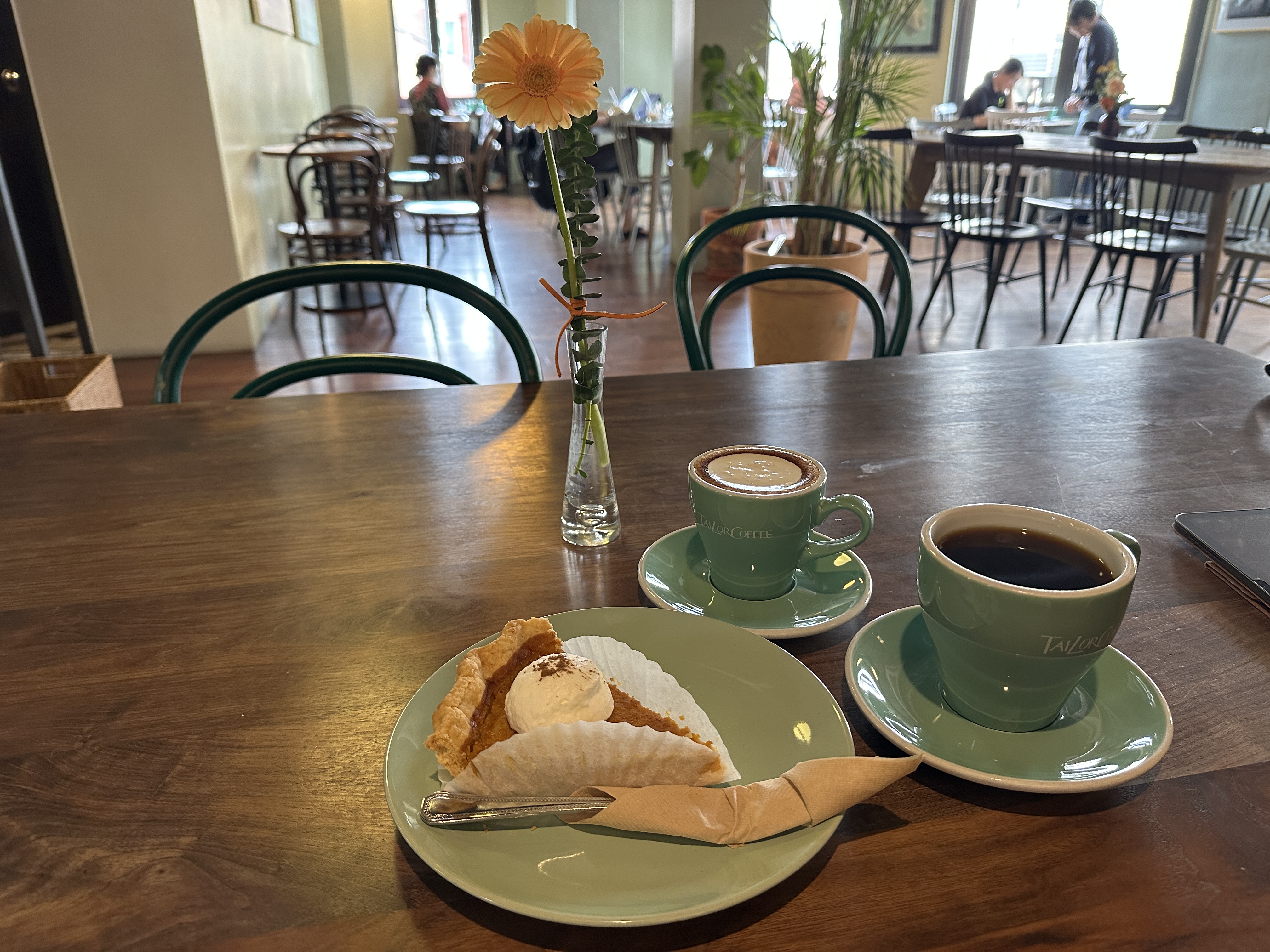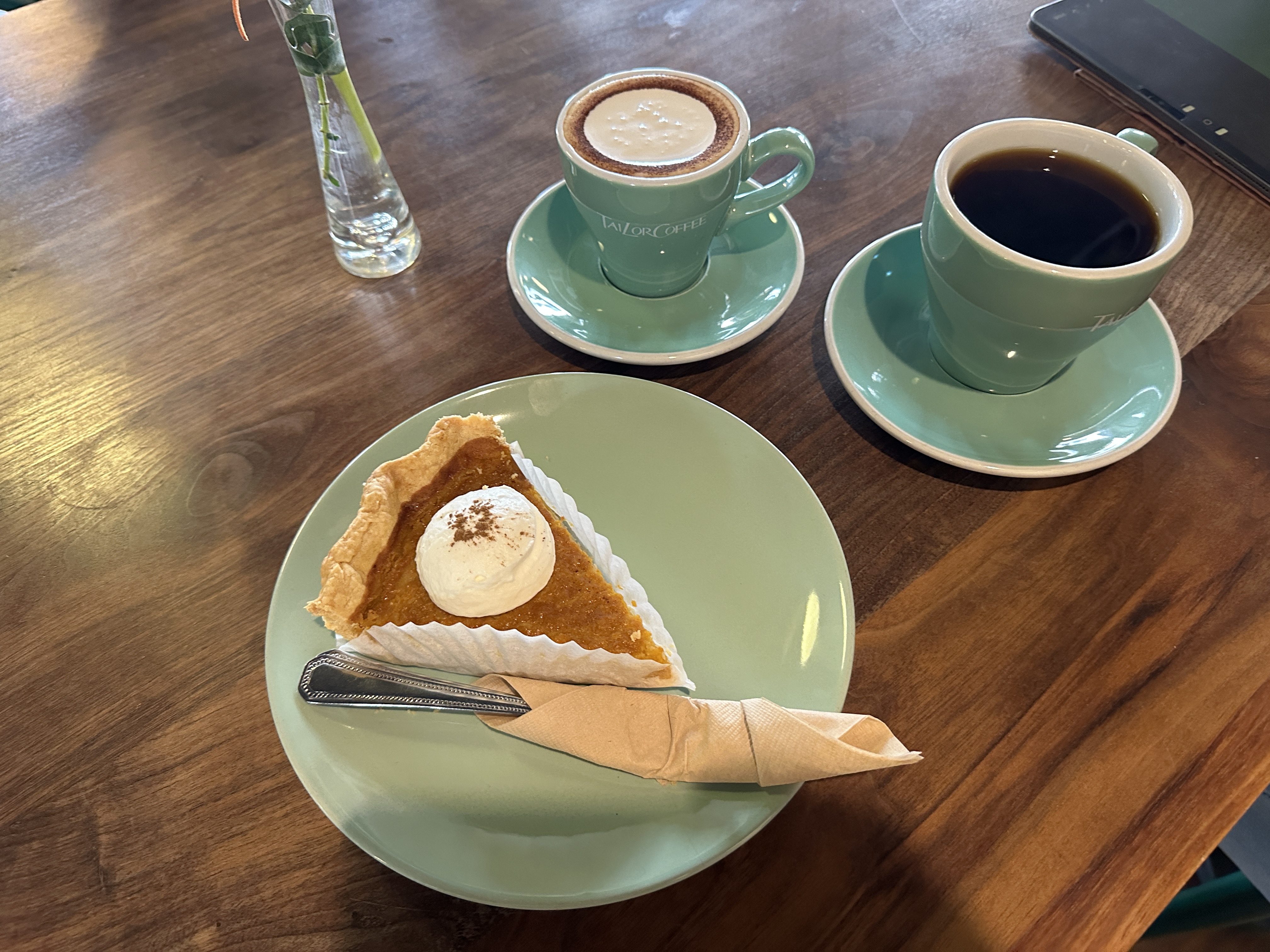 크림모카는 달달하게 먹기 좋더라고요. 달달한 커피 좋아하면 무난히 좋아할 맛이라 추천합니다. 위에 크림과 잘 어울렸어요. 그리고 호박파이가 생각외로 너무 맛있어서 놀랐어요. 바삭한 파이지랑 위에 호박필링이 넘 맛있더라고요. 테일러 커피 오시면 디저트로 파이류도 추천드립니다. 올때마다 만족스러워서 다음에도 또 오고 싶네요~