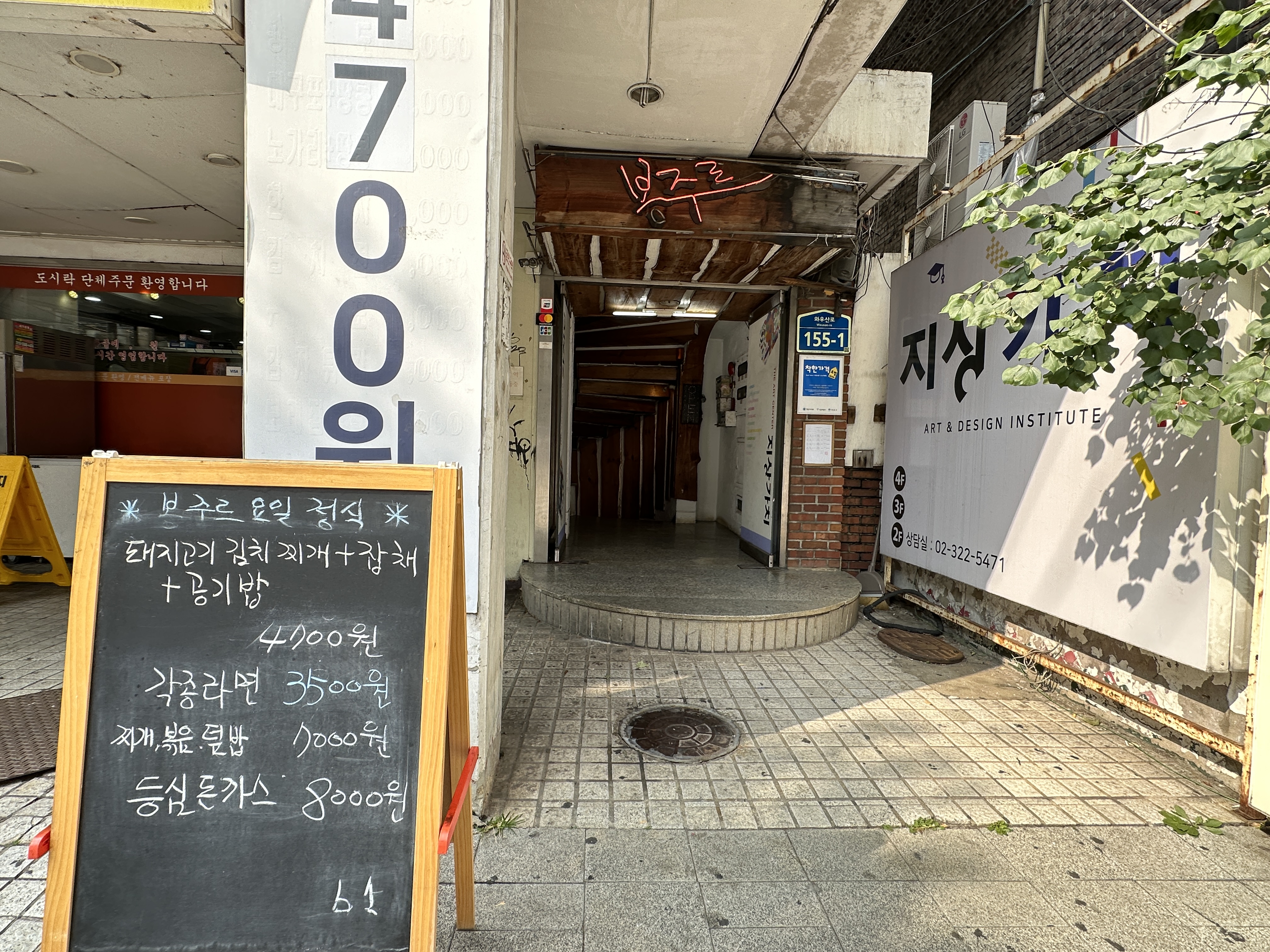 요즘엔 유튜브 쇼츠나 인스타 릴스로 정보를 많이 얻네요! 이번에도 쇼츠 혹은 릴스에서 발견한 식당인데요. 홍대에 엄청나게 저렴한 식당이 있다고 하더라고요. 봉주르라는 식당인데 여기서 판매하는 요일정식의 가격이 무려 4,700원이라고 합니다. 이건 노량진이나 대학동을 가도 쉽게 볼 수 있는 가격이 아니라고 생각했어요. 마침 친구와 홍대에 갈 일이 있어서 방문했어요. 홍대 봉쥬르~