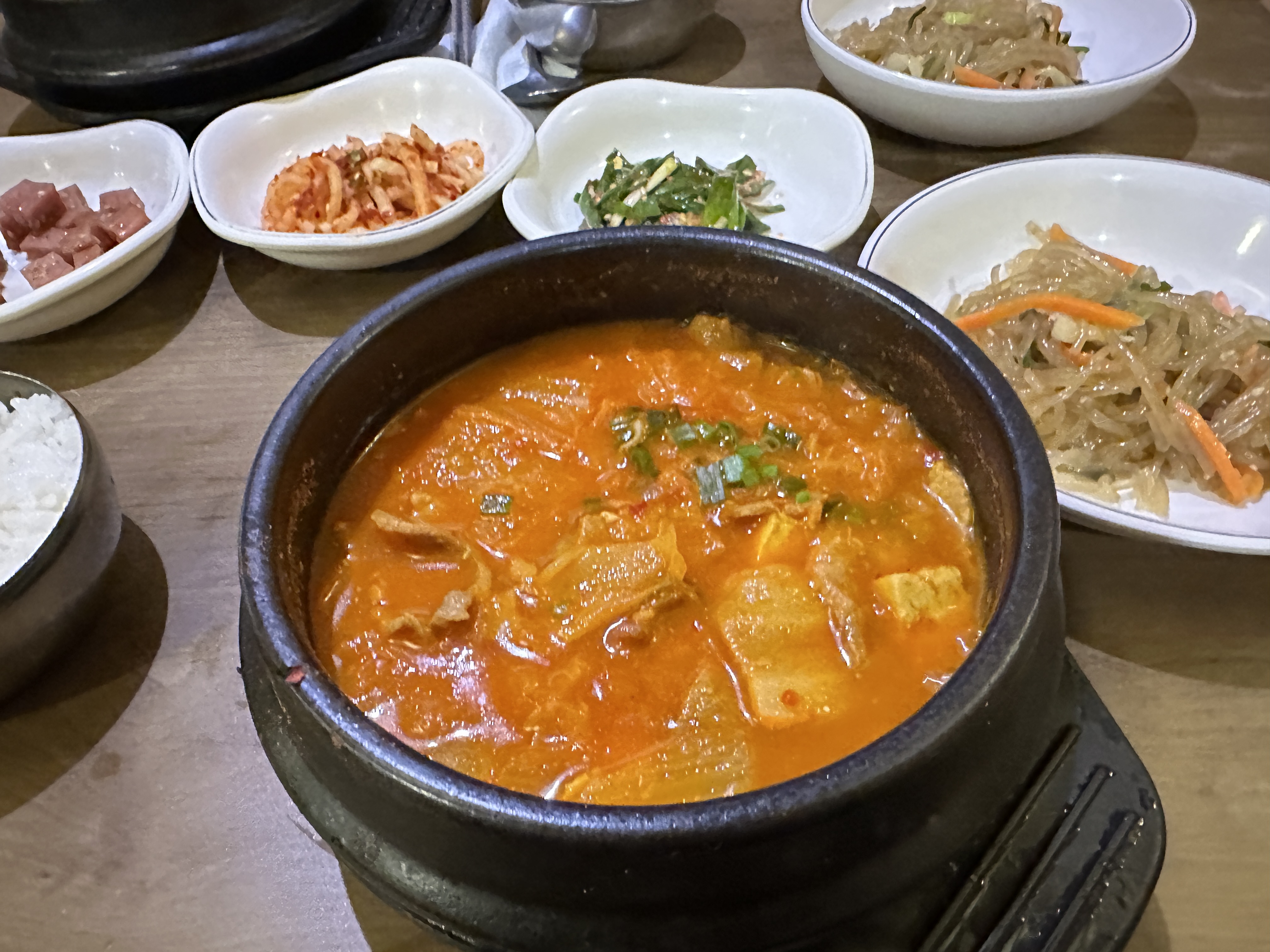 김치찌개는 생각보단 양이 많진 않았고요. 가격만큼의 양에 고기의 양도 아쉽긴 합니다. 그래도 가격 생각하면 다 용서되는 맛이었어요. 무난히 짭짤한 김치찌개 맛이었어요.