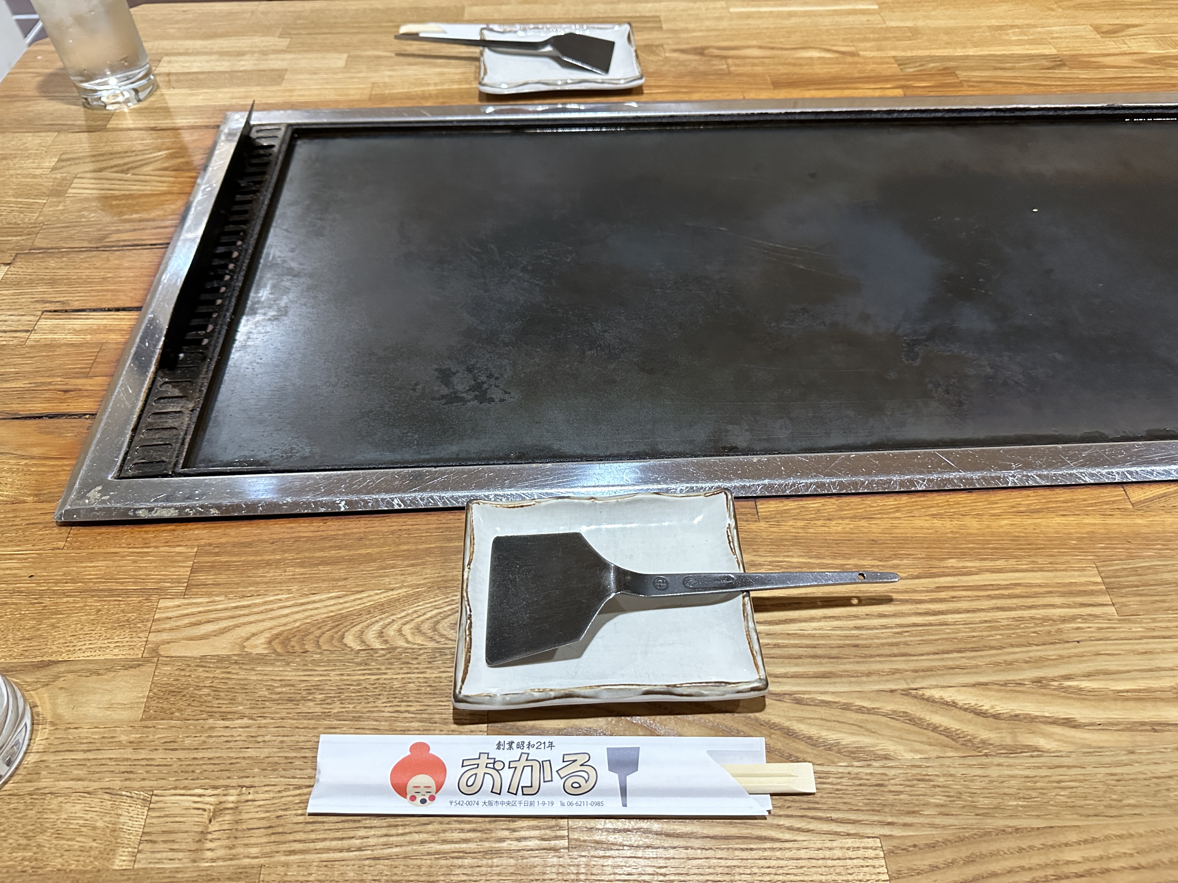 책상에는 연식이 오래되어 보이는 철판이 있었고 여름이라 정말 뜨거웠다. 시원할 때 가면 따뜻할 듯.. 앞접시와 뒤집개도 하나씩 주시는데 덜어먹기 좋았음.