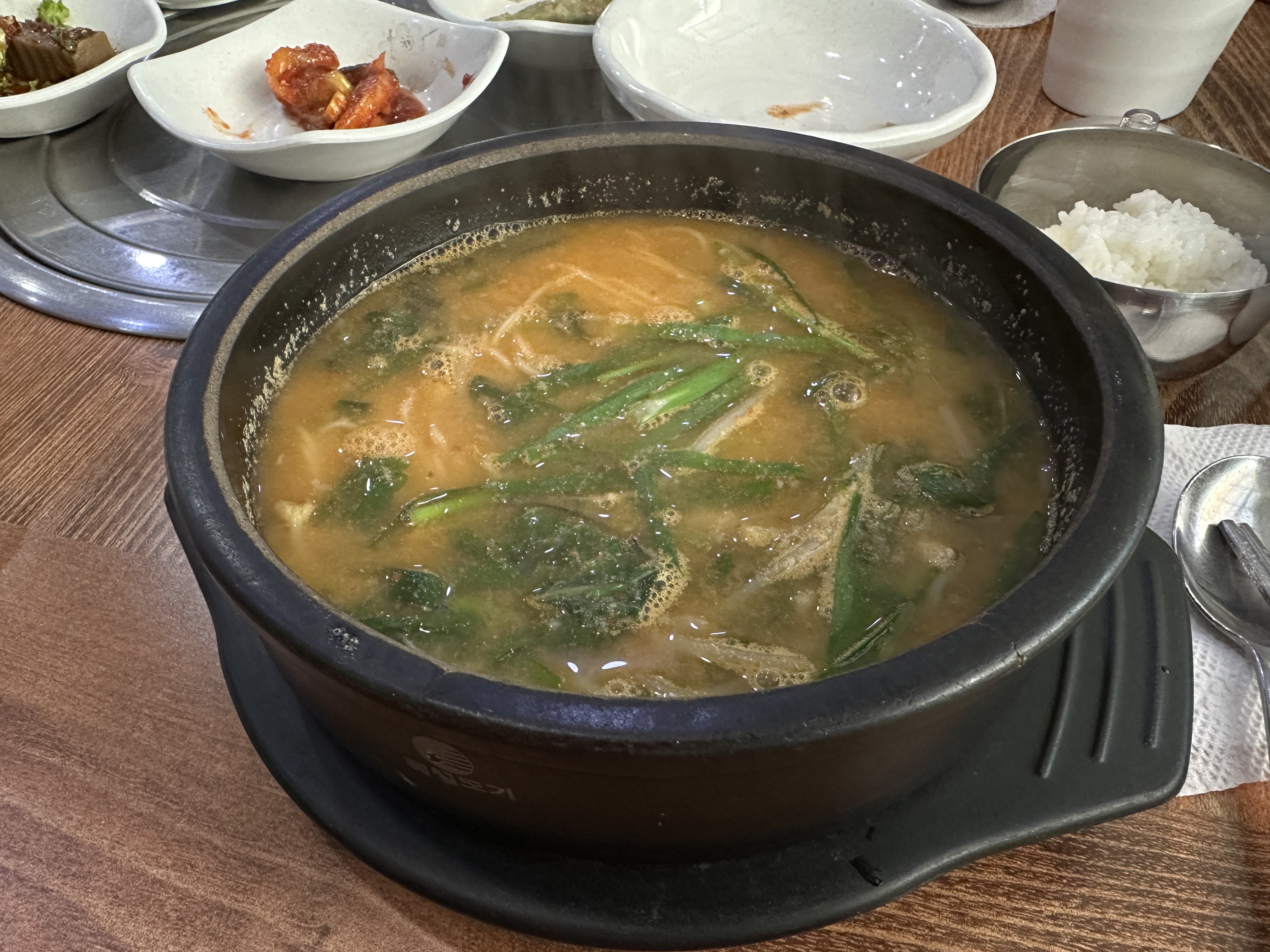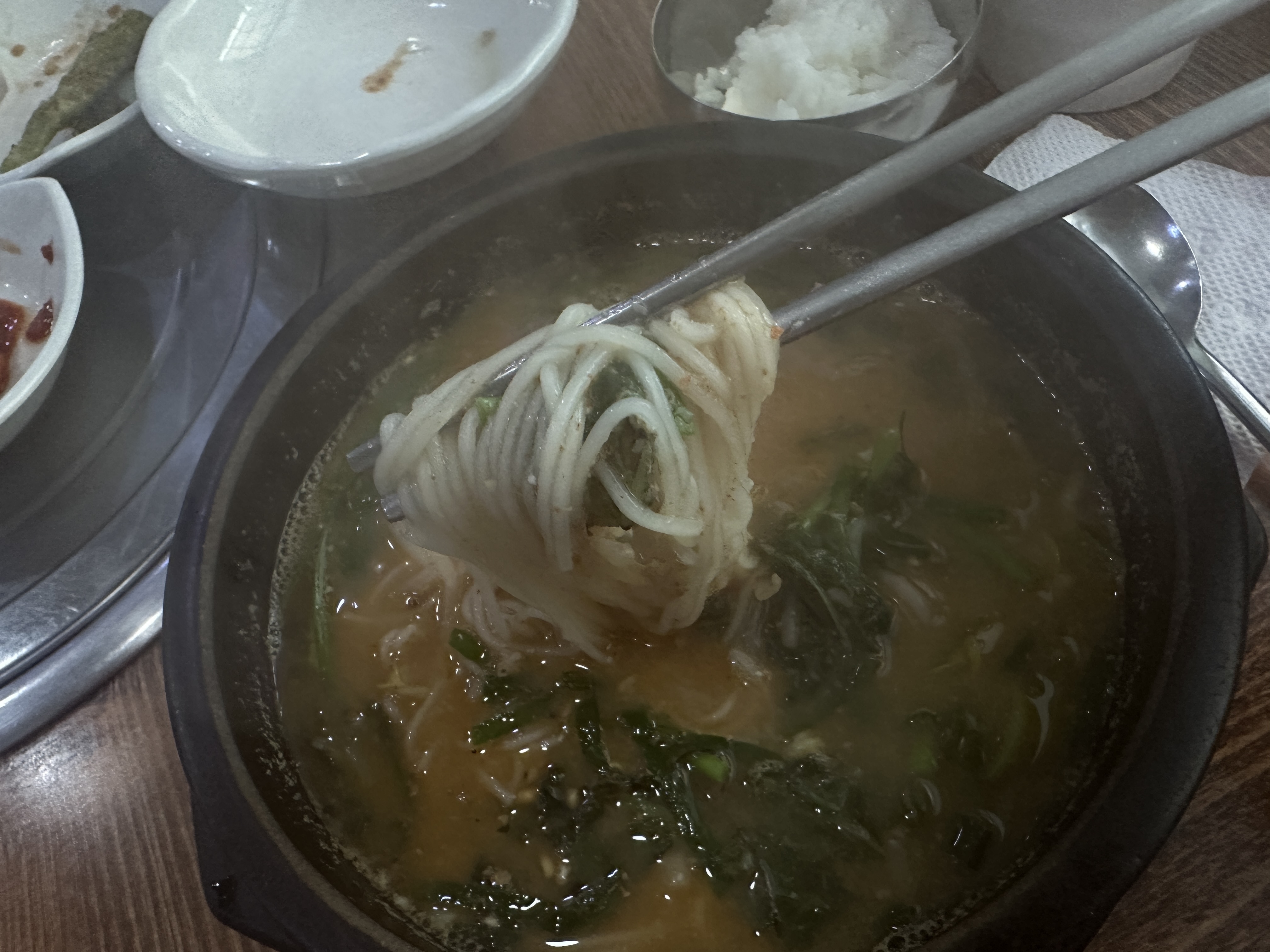 드디어 제가 너무 먹고 싶었던 어탕국수가 나왔어요. 국밥처럼 뚝배기에 나옵니다.