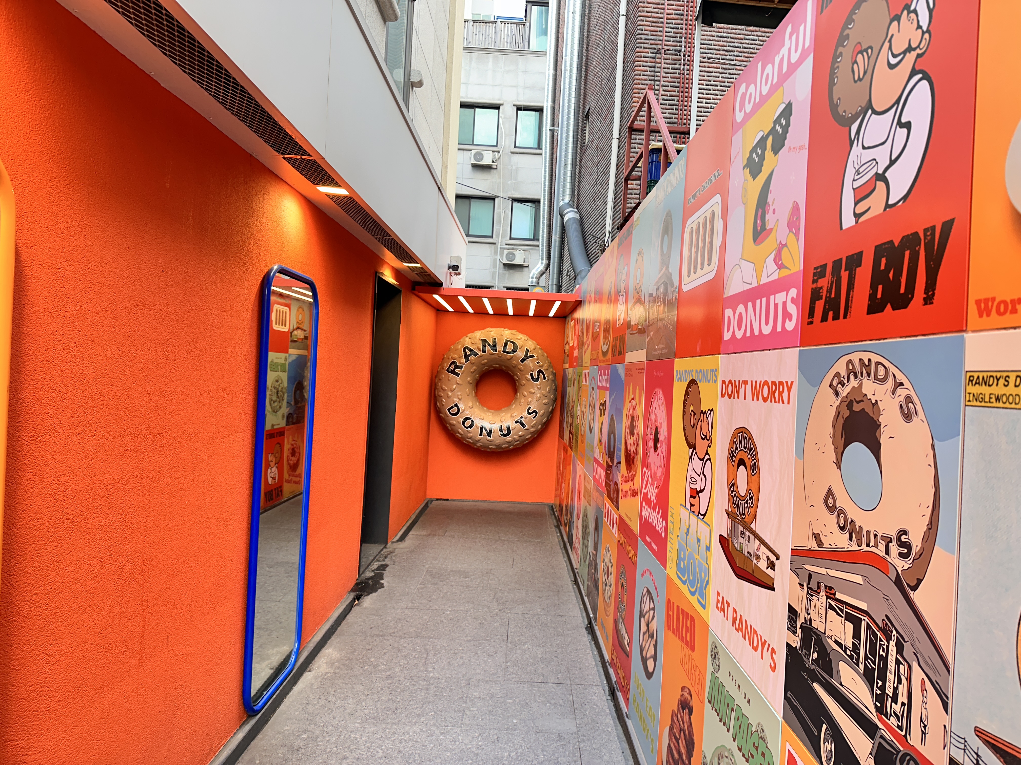 홍대맛집 랜디스 도넛 연남점 입구부터 화려하네요. 포토존으로 꾸며져 있어서 친구들이랑 사진도 한방씩 찍었고요~