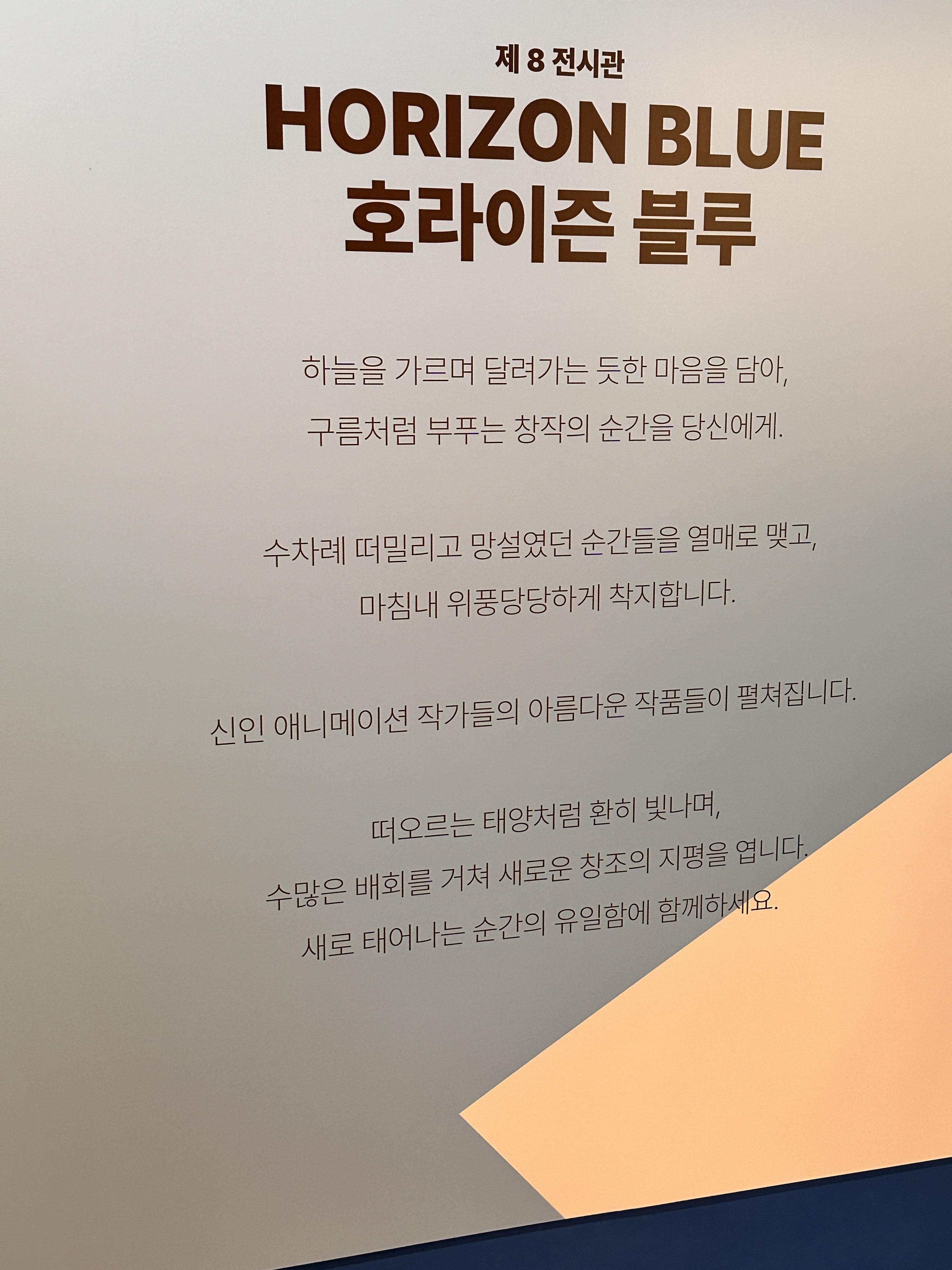 애니메이션도 영화관처럼 관람할 수 있었다. 작품도 수작업부터 디지털 작업까지 다양했음. 기대보단 좀 아쉬웠지만 오랜만에 혼자 전시보니 재밌었다. 작가님들의 열정이 느껴져서 그림 그리고 싶어짐~