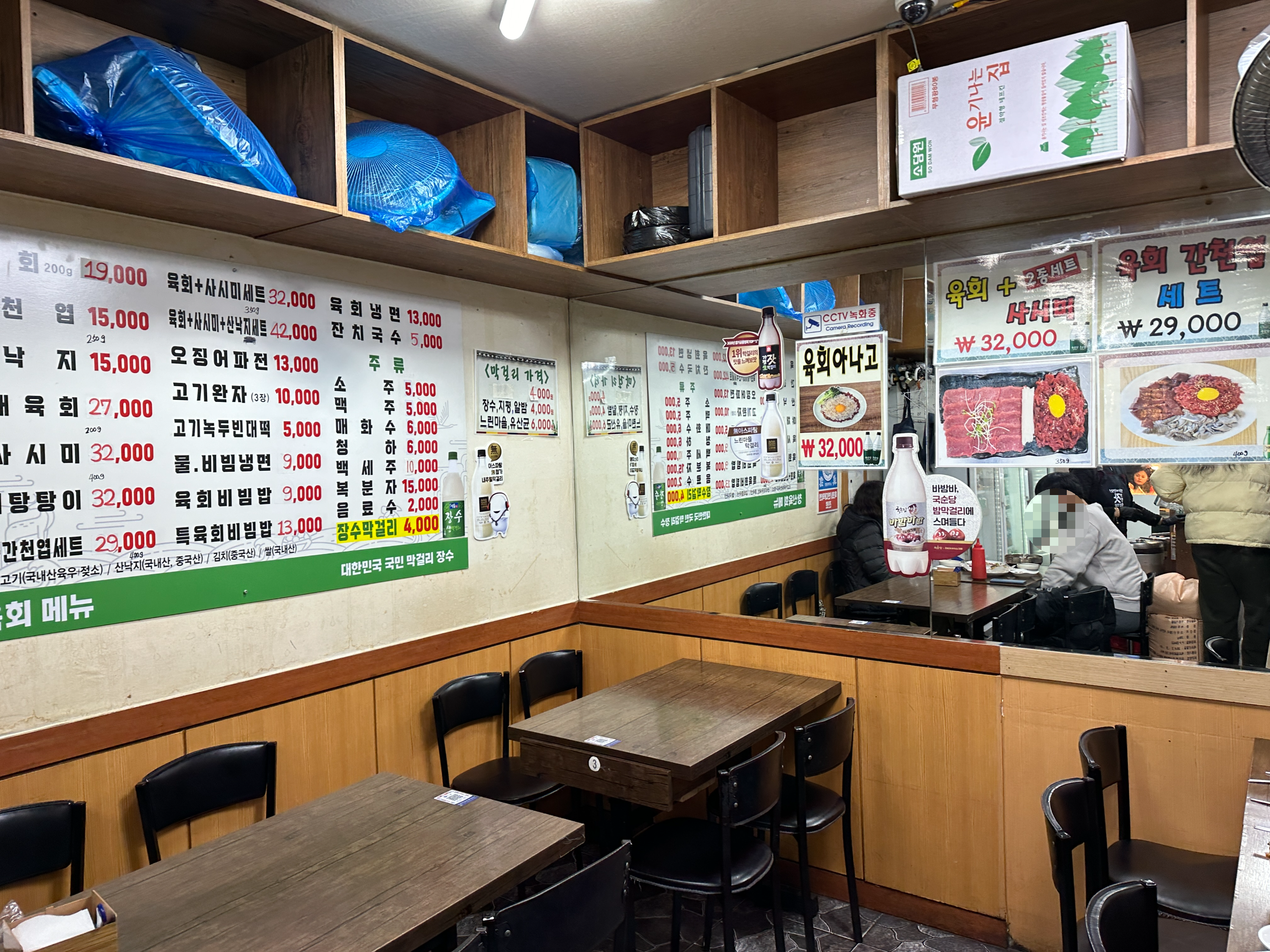 서울 광장시장먹거리 창신육회 내부입니다. 저희는 1층에 앉았는데 2층도 좌석이 있더라고요.