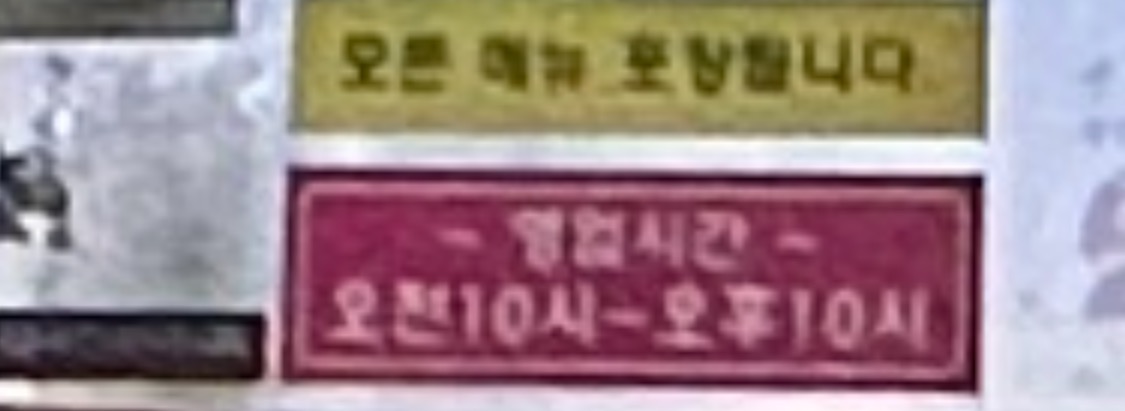 영업시간은 오전 열 시부터 오후 열 시까지예요. 모든 메뉴 포장 가능하다고 합니다. 확대했더니 화질이…