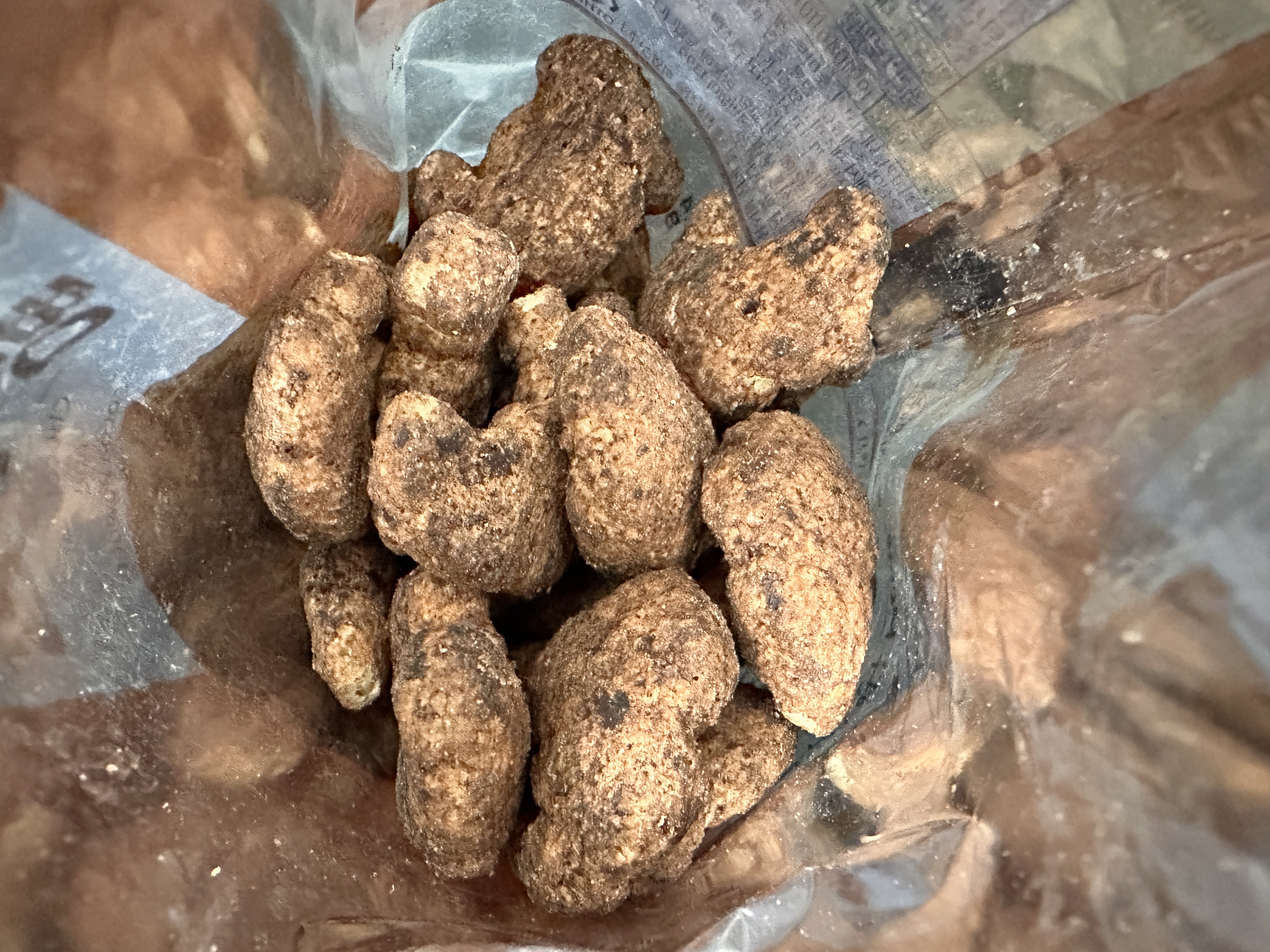 봉지를 뜯자마자 진한 초코향+커피향+시나몬향이 합쳐진 거 같은 달달한 향이 났어요. 카메라 설정 때문에 좀 밝게 나왔네요.