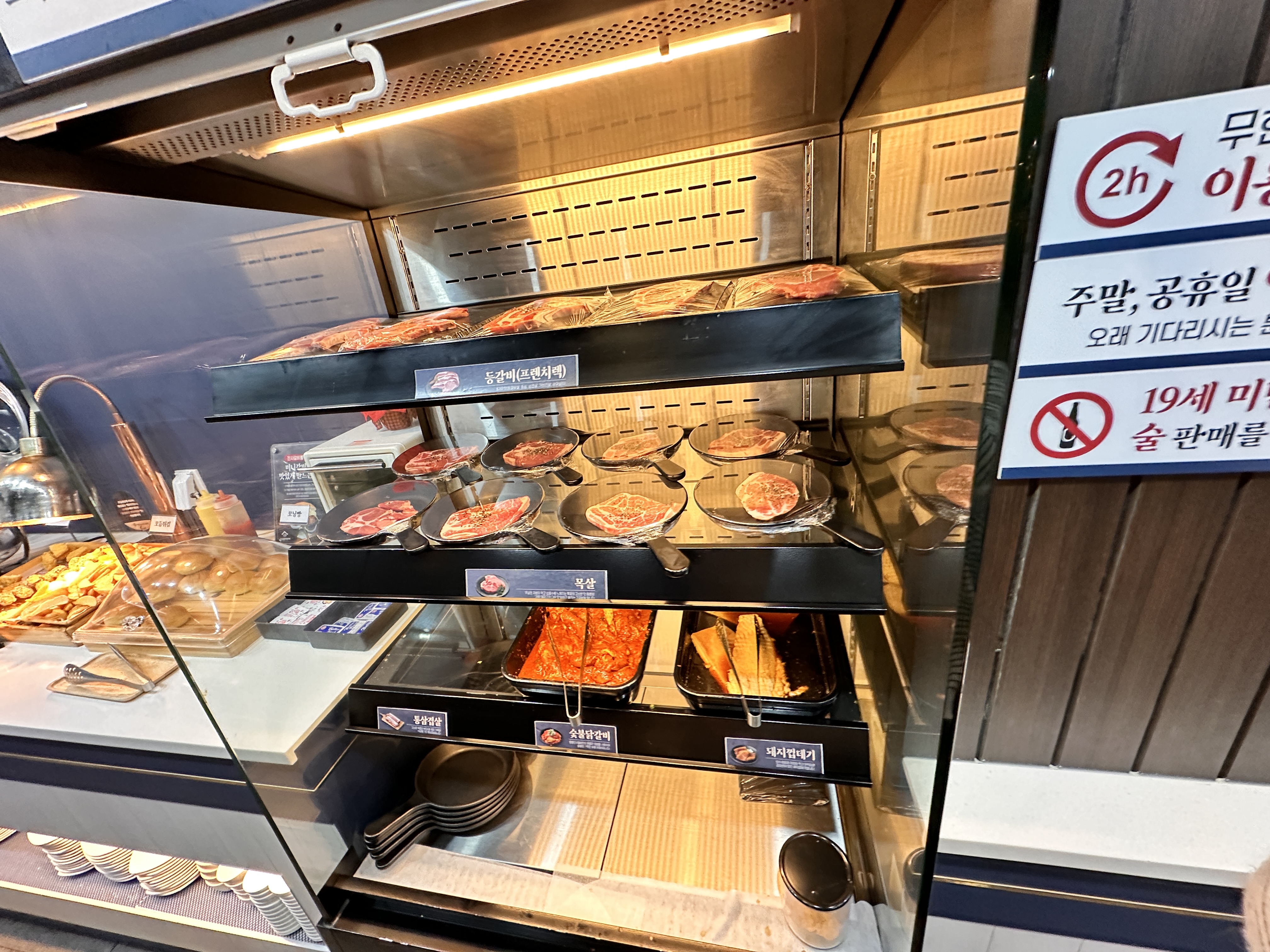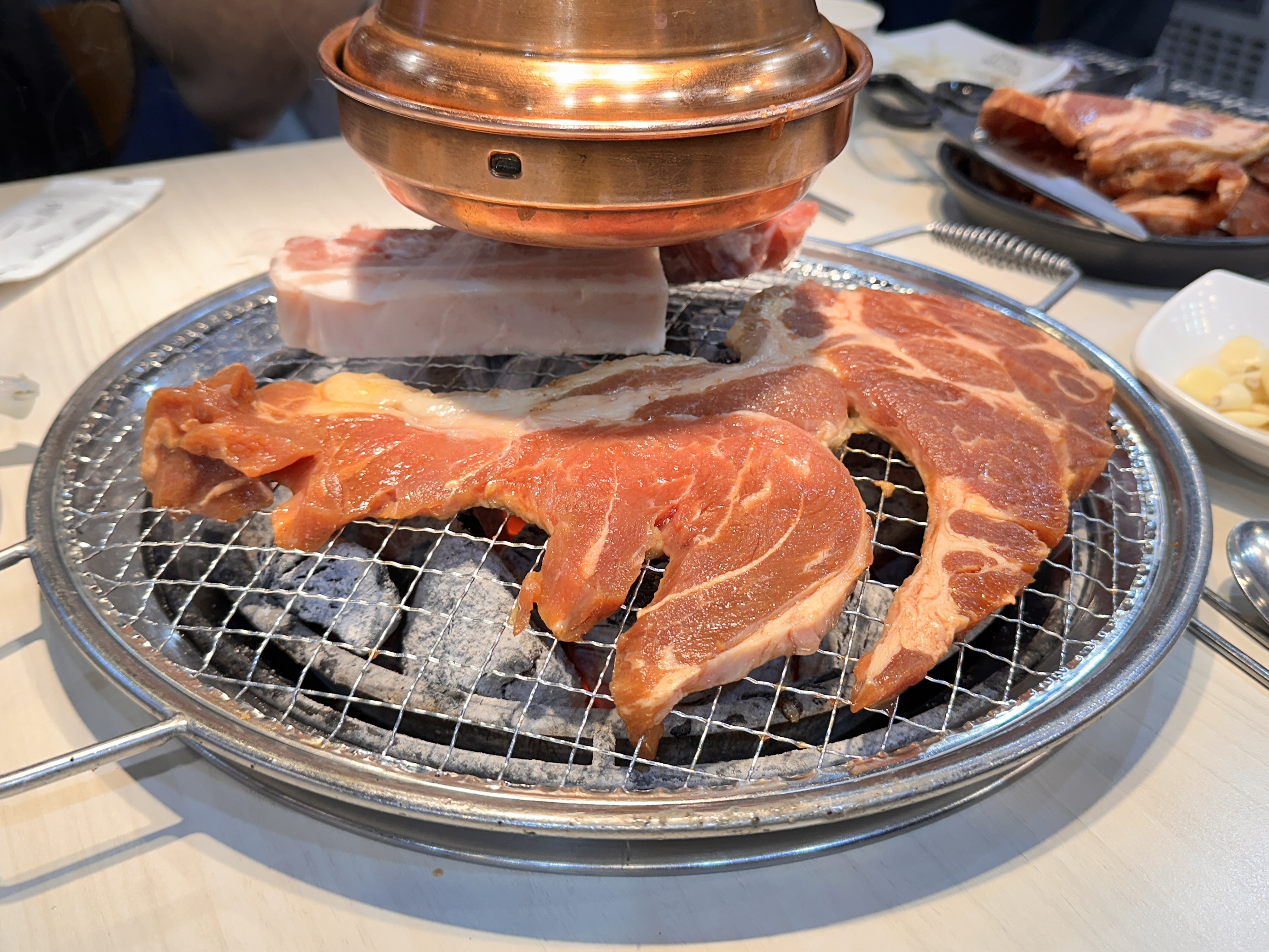 갈비 외에 등갈비(프렌치렉), 목살, 통삼겹살, 숯불닭갈비, 돼지껍데기등 직접 가져와서 먹을 수 있습니다. 개인적으로 여기 목살이 질기지 않고 맛있어서 저는 갈비 다음으로 명륜진사 목살이 제일 맛있었어요!