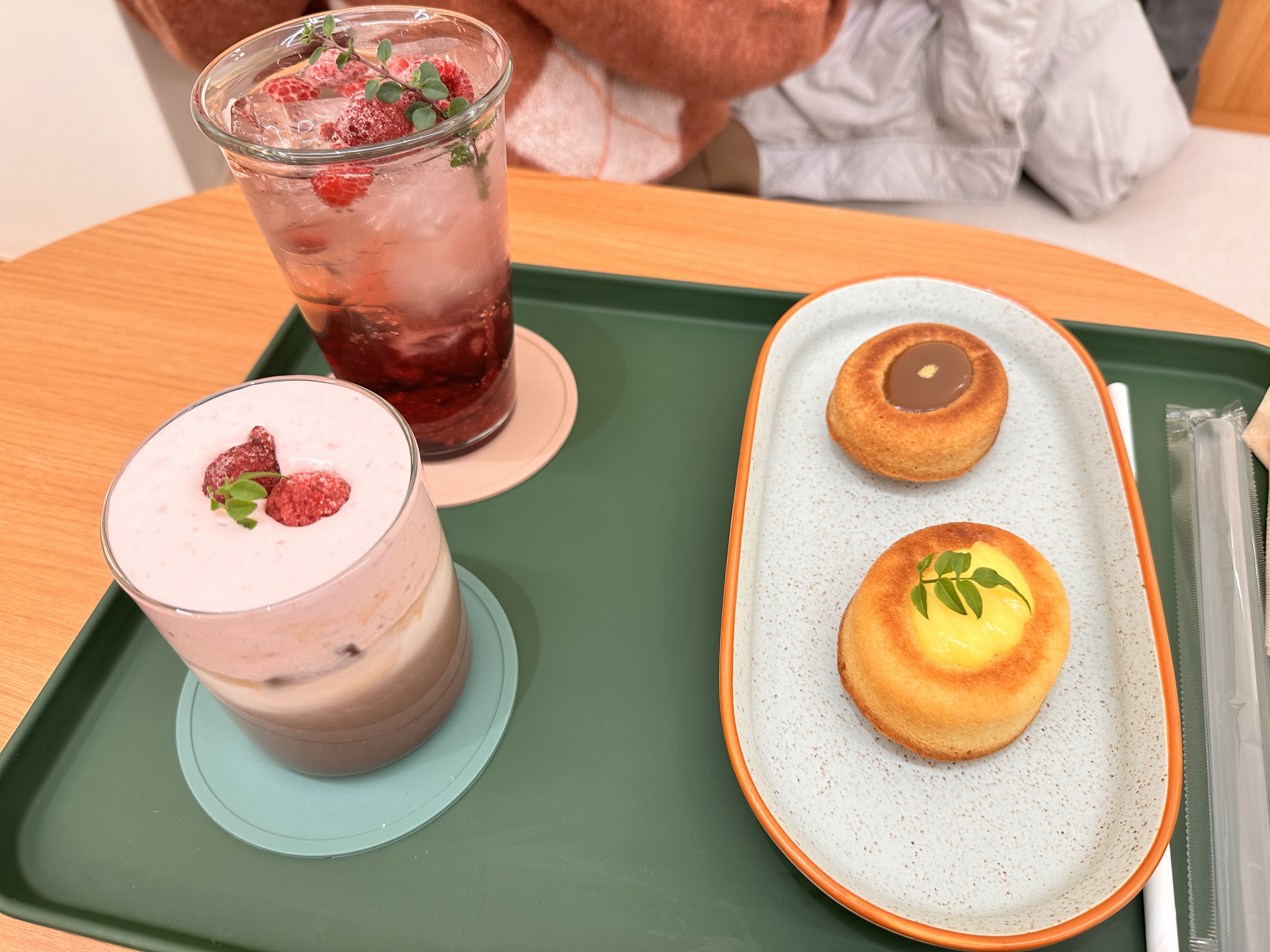 주문한 음료 두잔과 티그레~! 티그레 맛집이네요! 개인적으로 레몬보다 솔티드 캬라멜이 맛있었어요. 음료도 달달한 라즈베리랑 에이드 조합이 좋았습니다. 잠실 송리단길 카페로 카페라크 추천드려요!