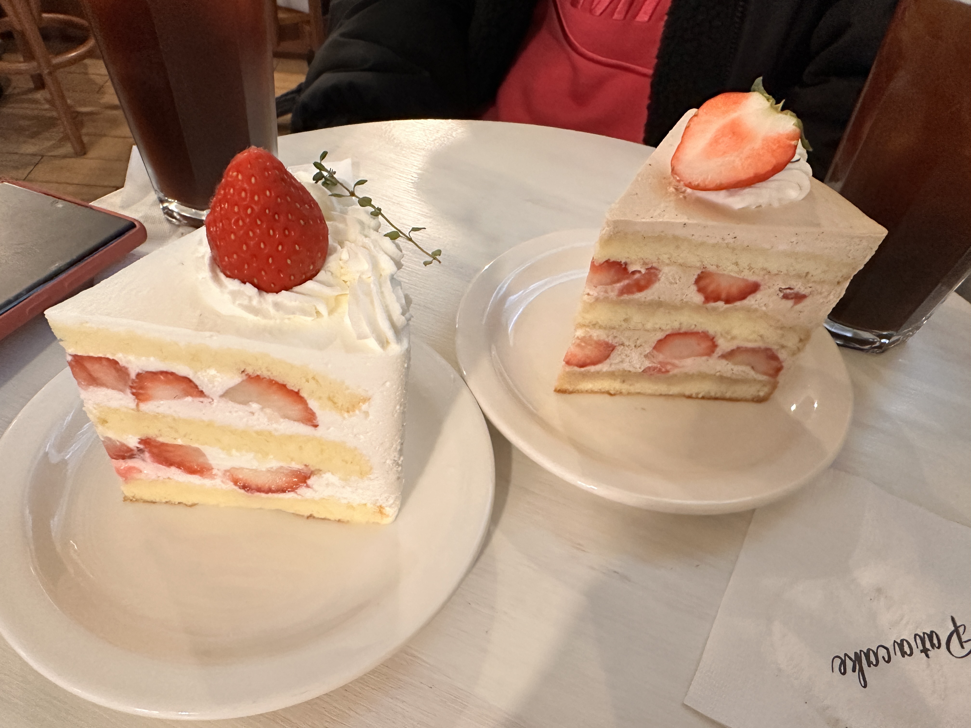 왼쪽은 딸기생크림 케이크 오른쪽은 딸기 얼그레이 케이크예요. 다들 케이크를 먹겠다는 의지로 시킨 아이스 아메리카노.. 커피맛은 무난한 맛이어서 케이크랑 먹기 좋았고요.