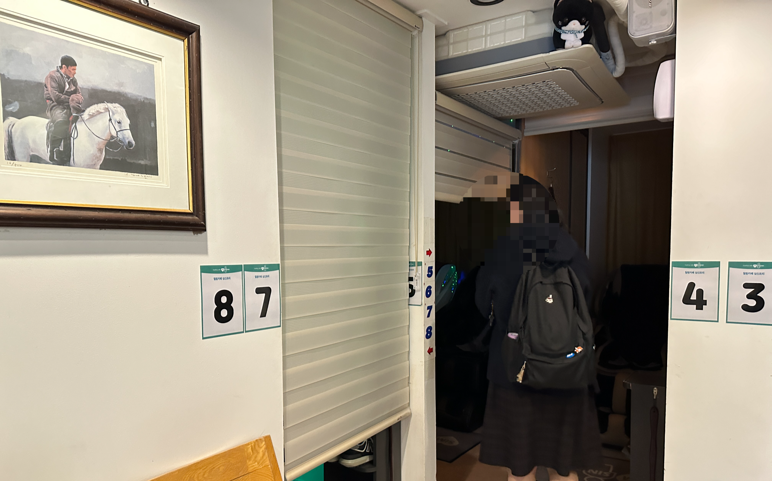 이용가능한 칸을 선택해서 들어갑니다. 2인이 이용할 수 있고 1인실도 있었어요!