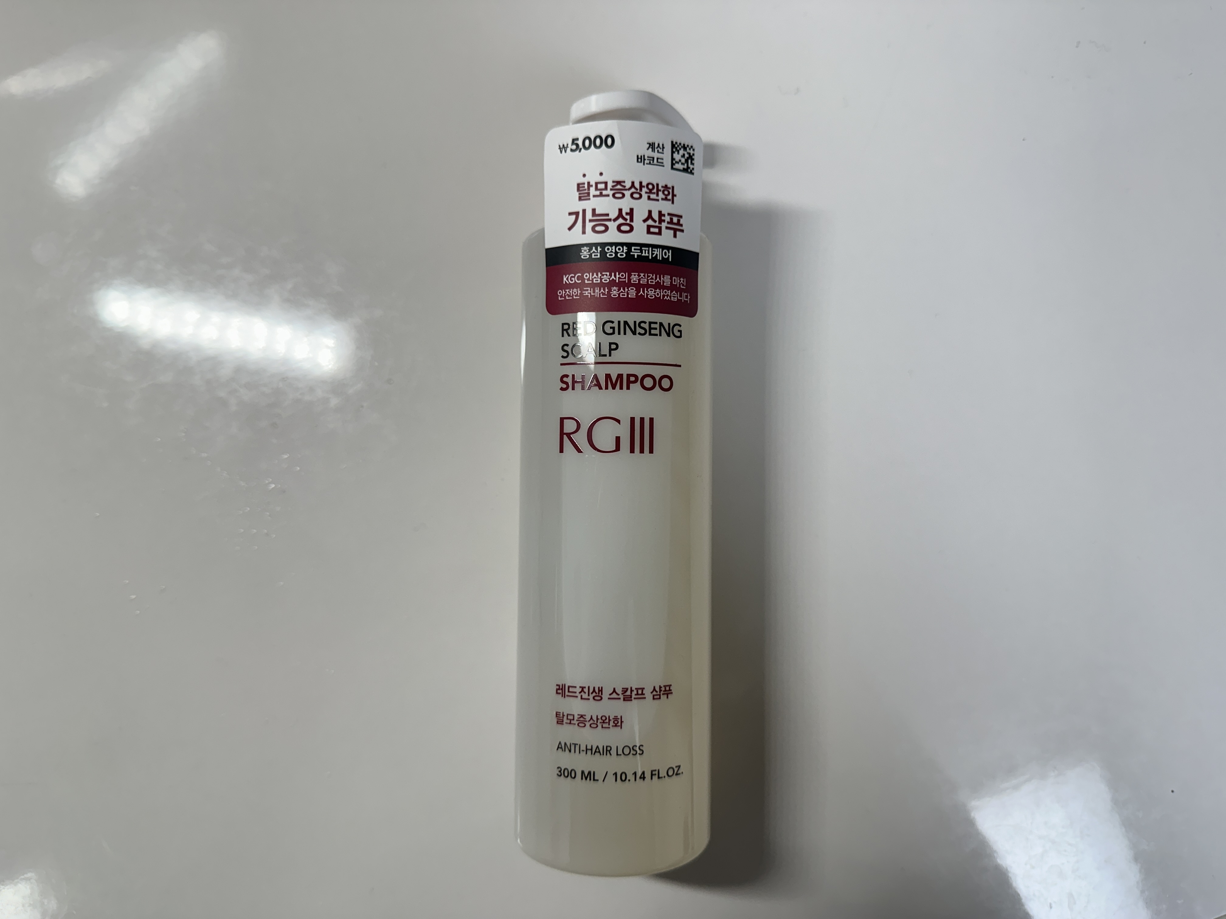 다이소에서 판매하는 탈모샴푸인 RGlll 알지쓰리 레드진생 스칼프 샴푸입니다. 가격은 5,000원에 구매했어요~