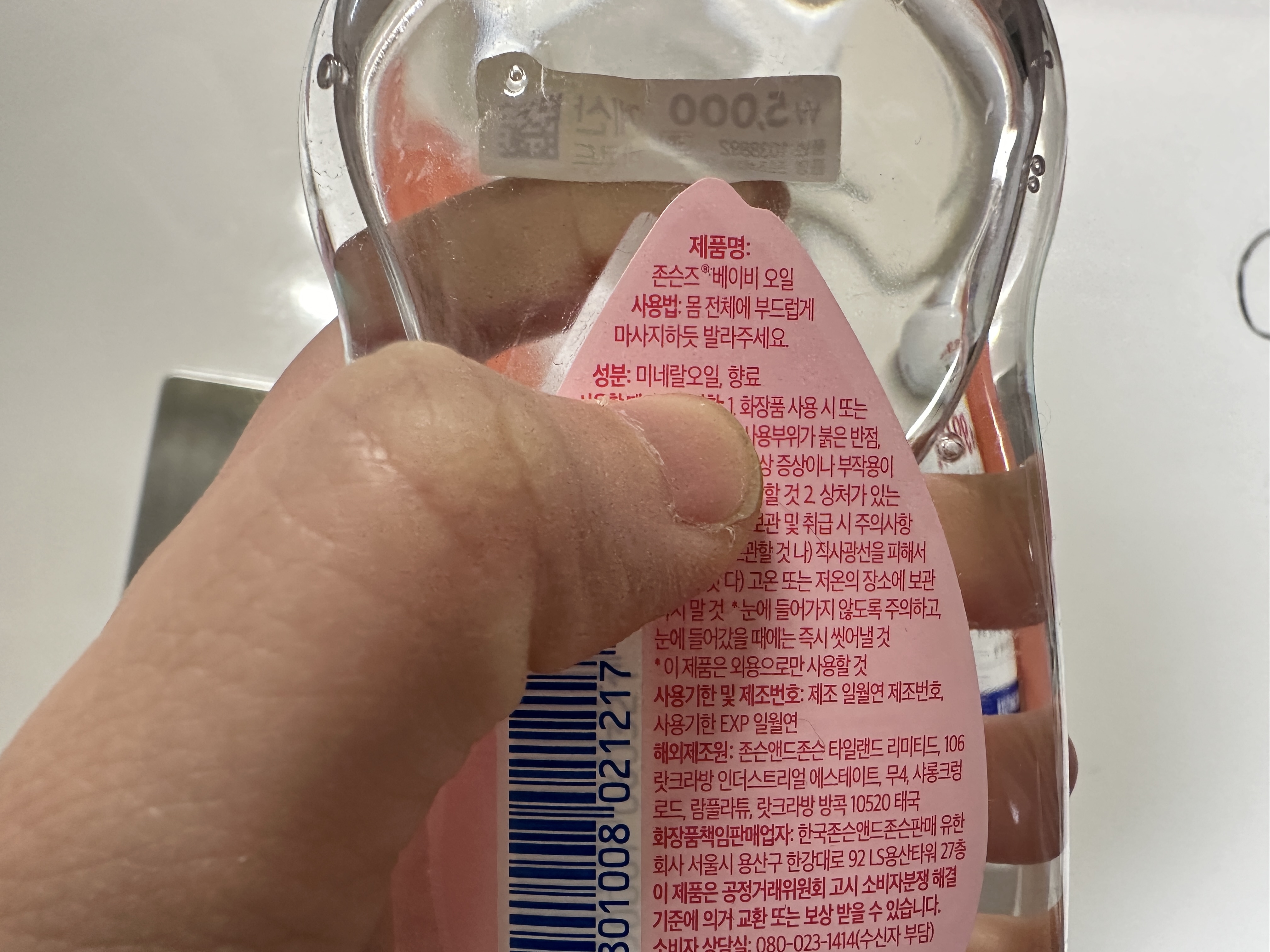 왜냐면 다이소에서 파는 존슨즈 베이비오일 성분이 미네랄오일+향료이기 때문..