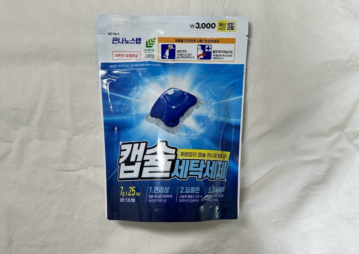 아니 다이소에 캡슐 세탁세제를 파네요??? 캡슐세제 처음 나왔을 때부터 한번 써보고 싶었는데 가격이 좀 비싸서 액체세제만 계속 써왔어요. 그런데 다이소에서 캡슐세제를 팔다니 못 참지요! 마침 세제가 필요했는데 바로 구매했습니다.