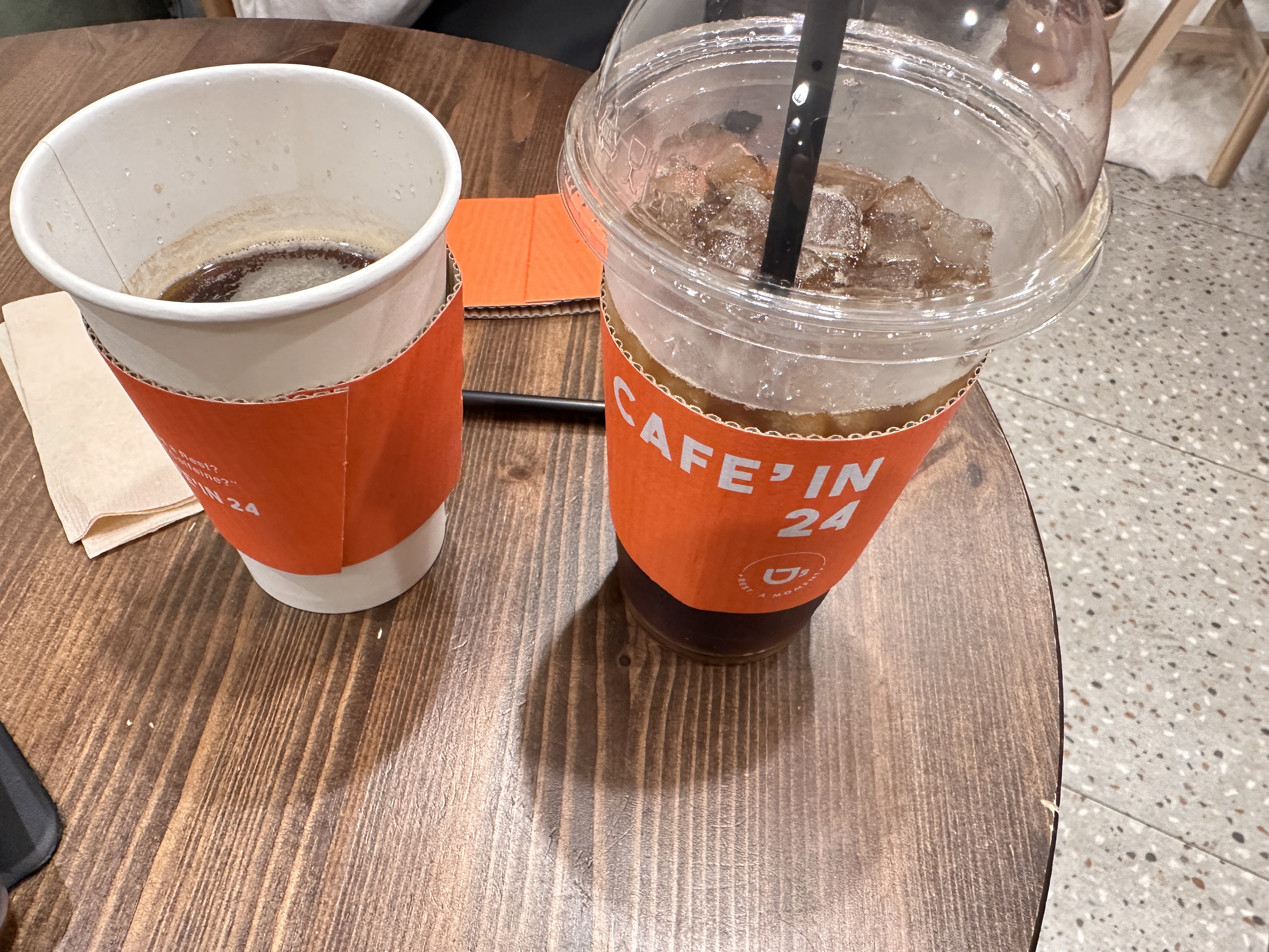 커피맛은 꽤 맛있었습니다! 샷 하나만 내릴 수 있어서 이걸로 연한 걸로 구매했는데 탄맛도 안 나고 저는 맛있게 먹었어요. 은근 무인카페 와서 늦게까지 공부하고 가는 사람도 있었고요. 저희도 옥수역 카페인 24 무인카페덕에 밤새 잘 머물다 갔네요~