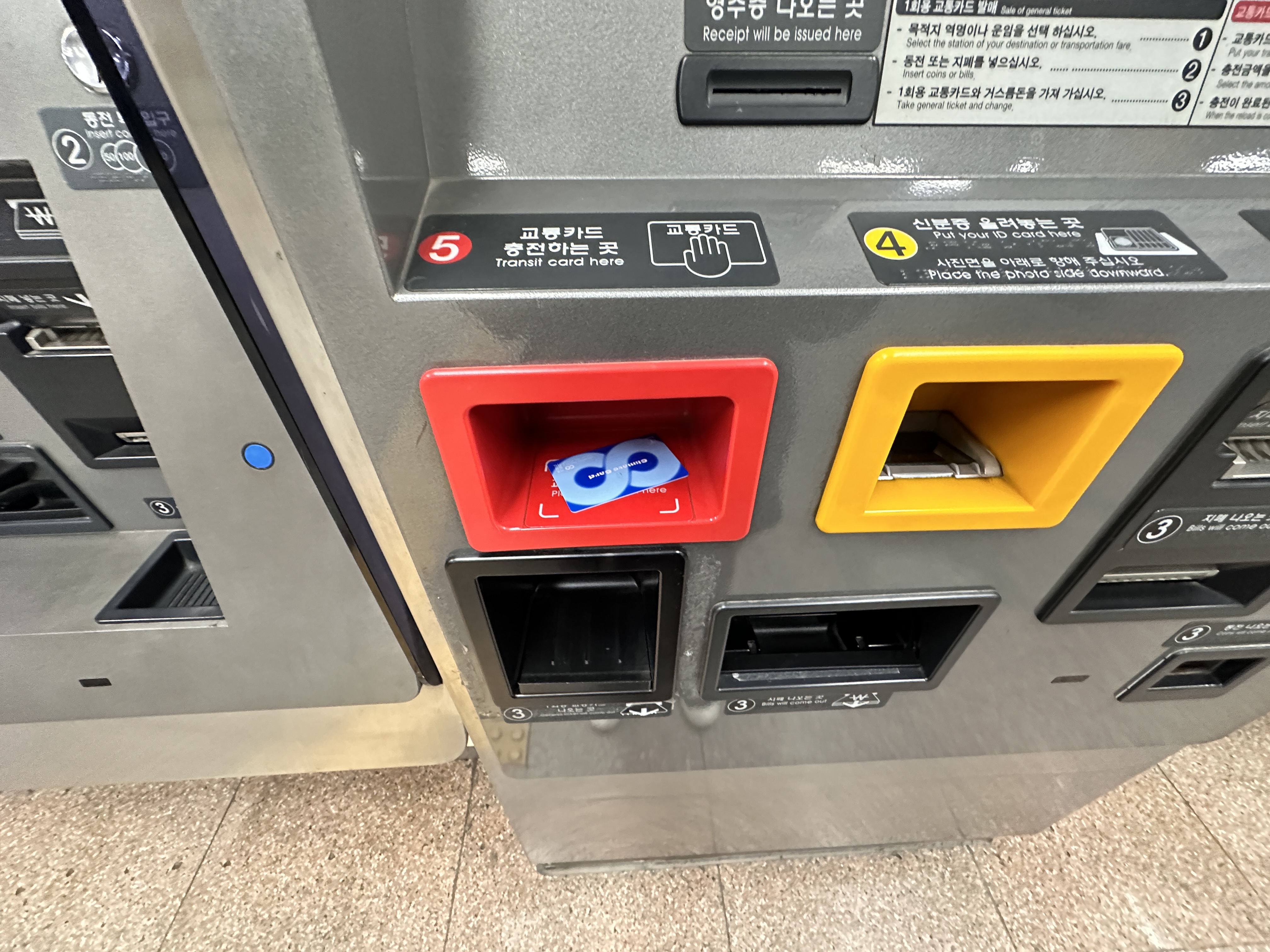 교통카드 충전하는 곳에 기후동행 카드를 올려놓습니다.