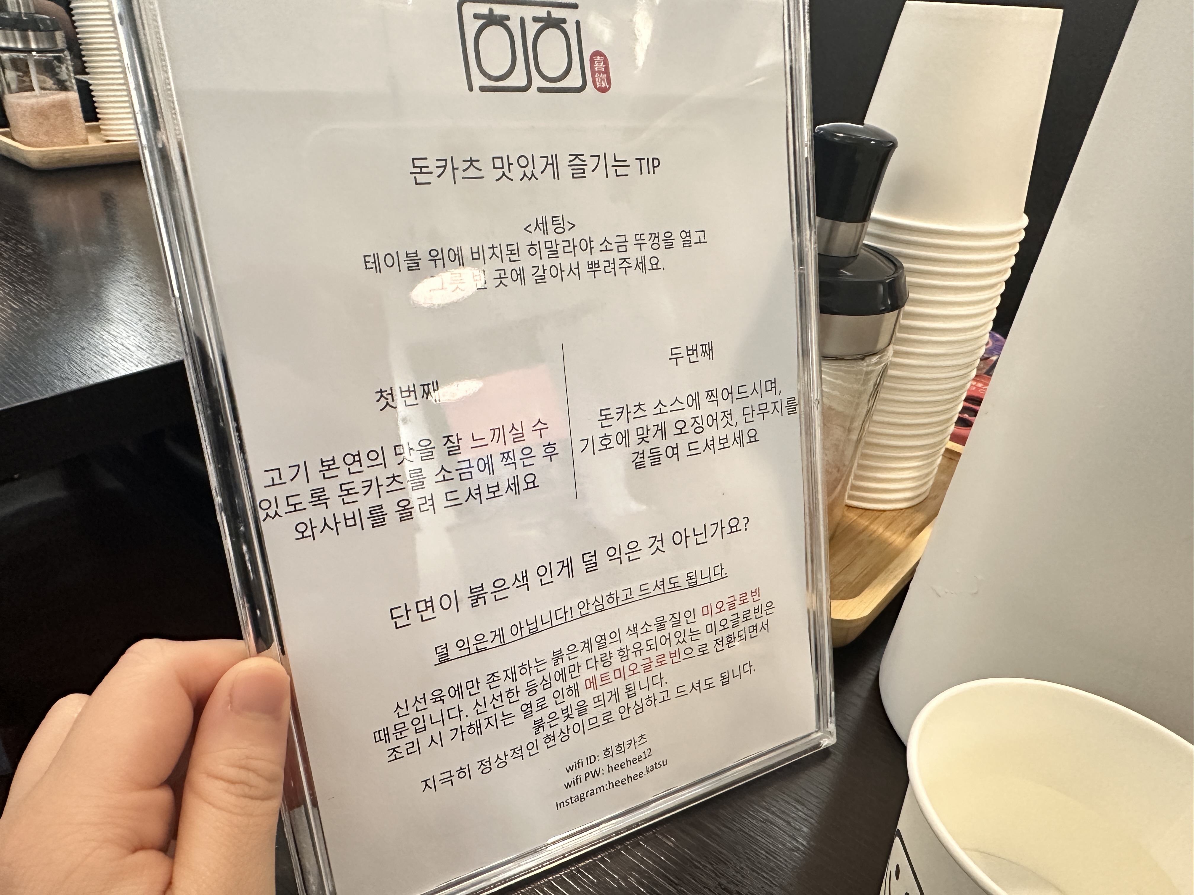 희희카츠 맛있게 즐기는법도 테이블에 적혀있어요~