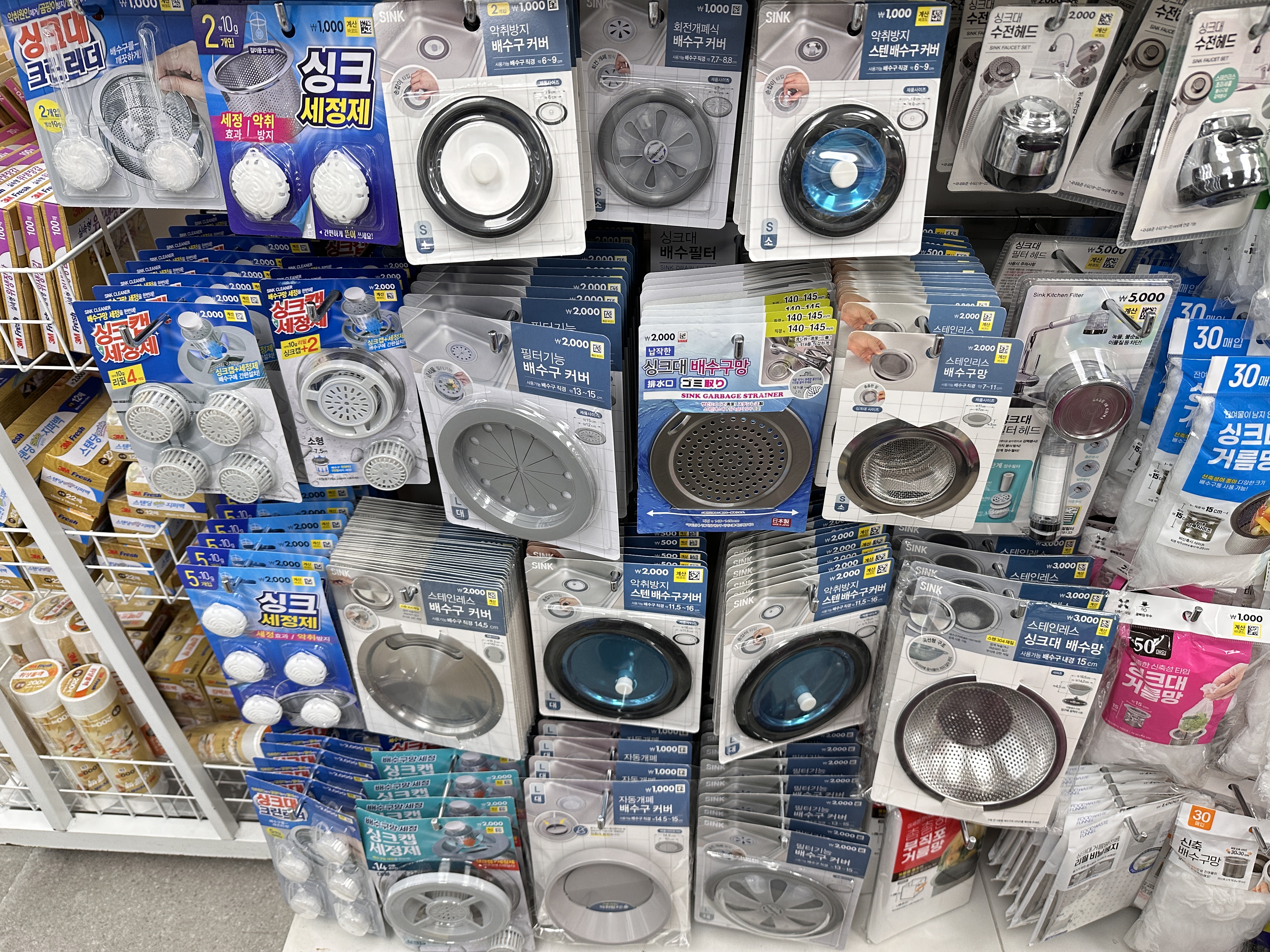 다이소 싱크대 배수구 덮개 종류입니다. 사이즈별로 다양하게 판매하고 있어서 사이즈만 잘 확인하고 구매하시면 될 거 같아요. 예전에 유튜브에서 꾀람쥐님의 배수구망 처음 봤을 때 너무 편해 보였는데 다이소에서도 비슷한 제품을 팔고 있네요.