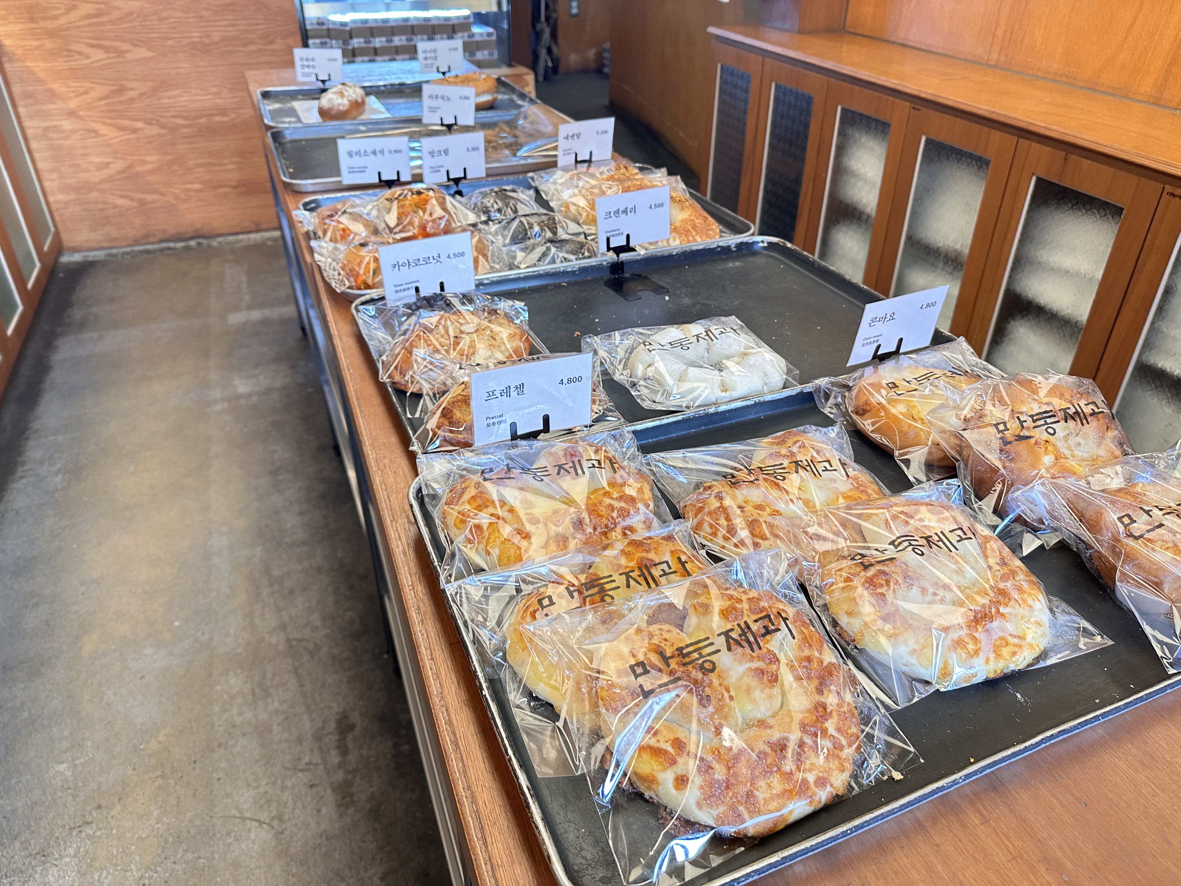 가게 내부엔 빵이 이렇게 진열되어 있고요.