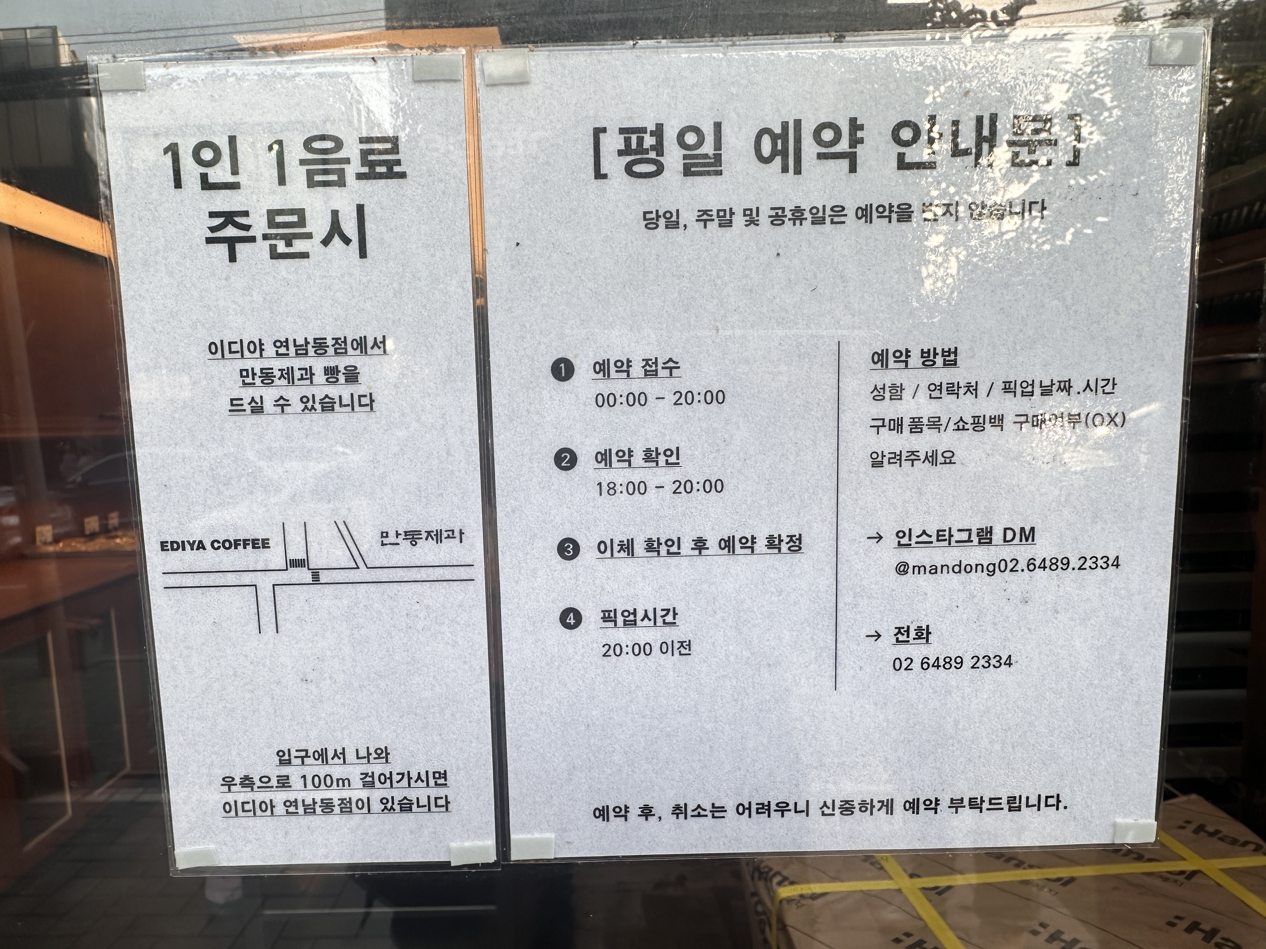 이디야 연남동점에서 음료를 주문하면 빵을 먹을 수 있다고 하네요. 평일 예약 안내문도 확인하세요~