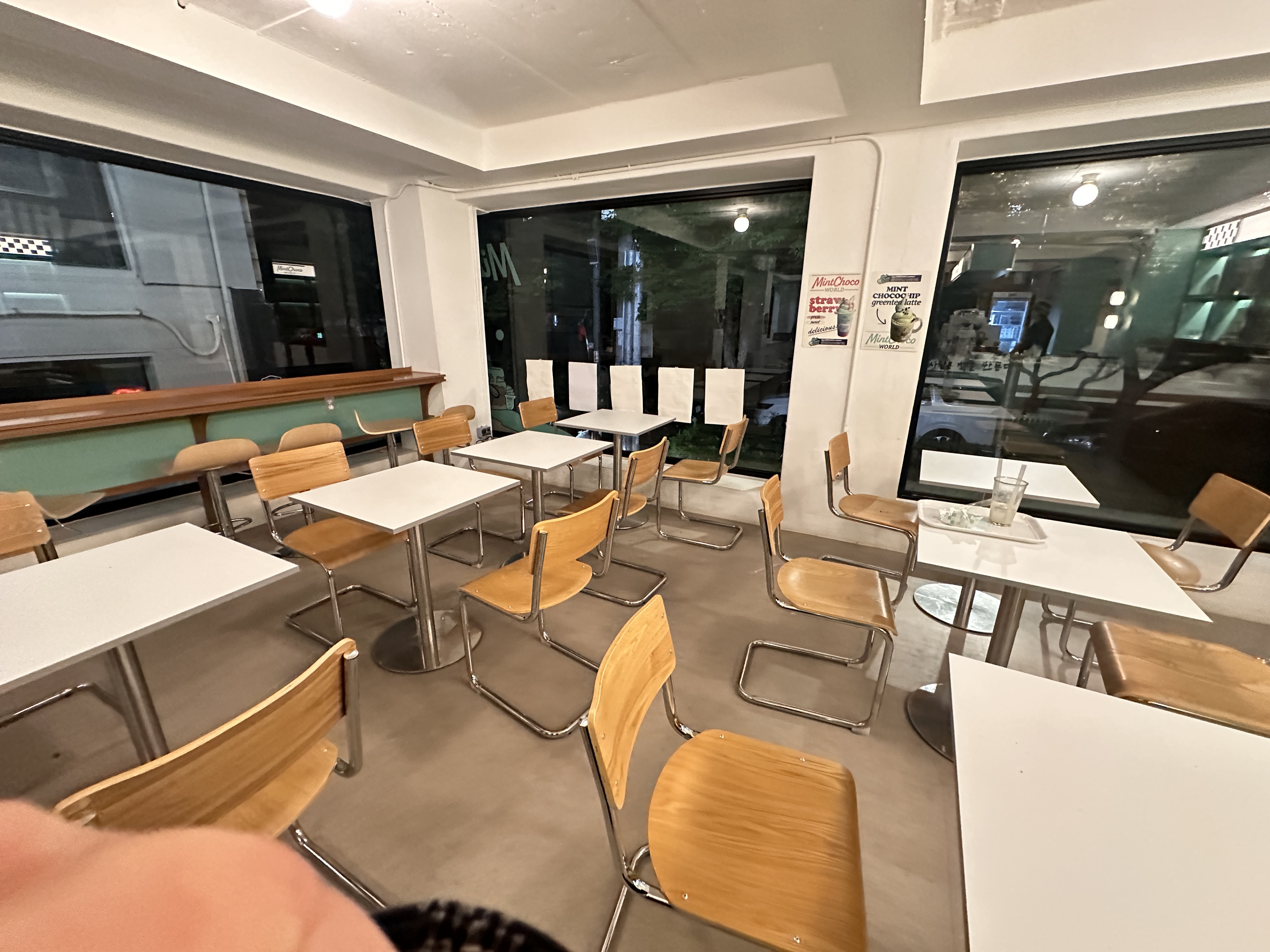 민트초코월드 카페 내부입니다. 마감 임박시간에 왔더니 역시나 손님은 저희 들어오고 한 팀정도 더 왔습니다.