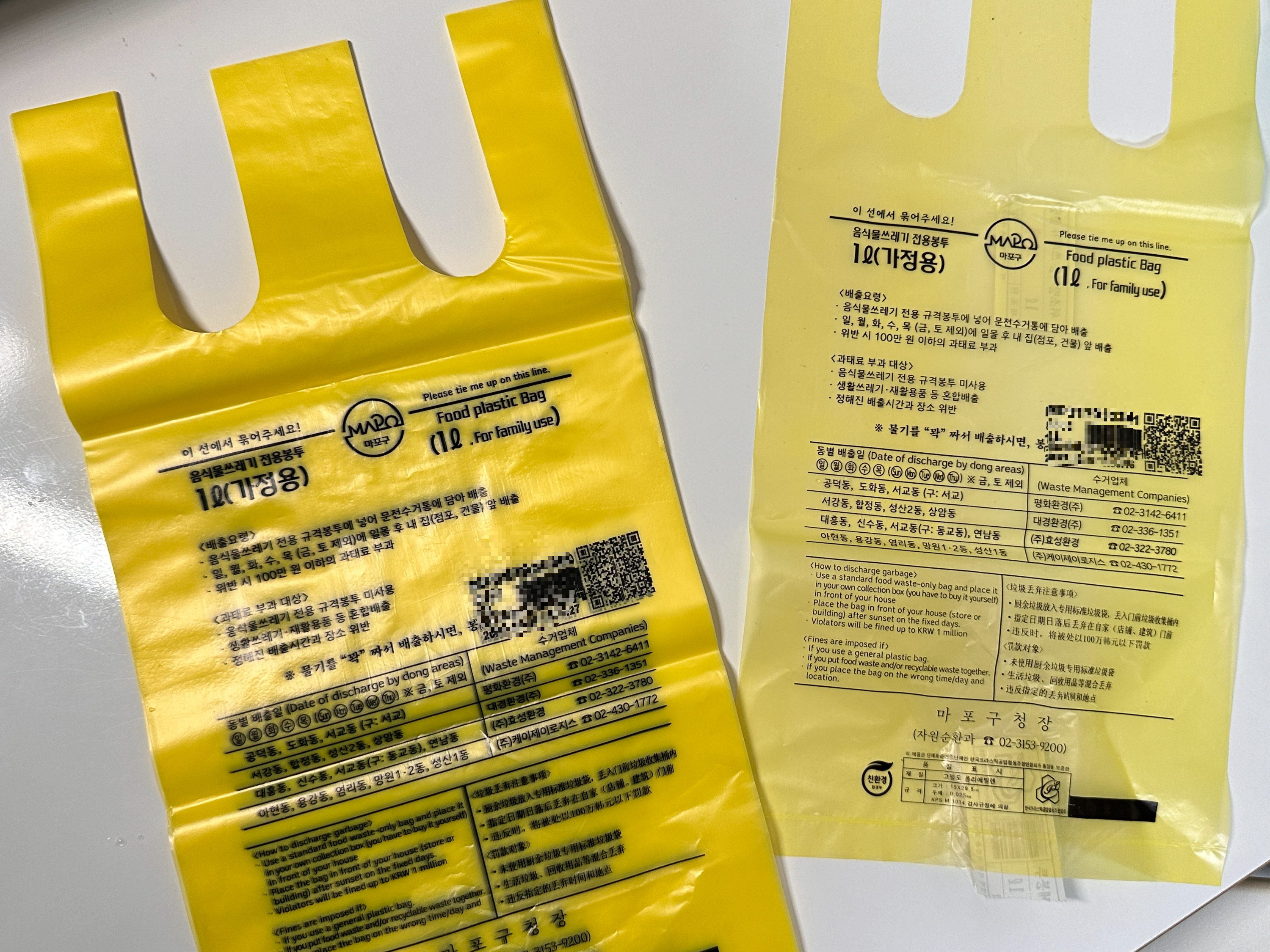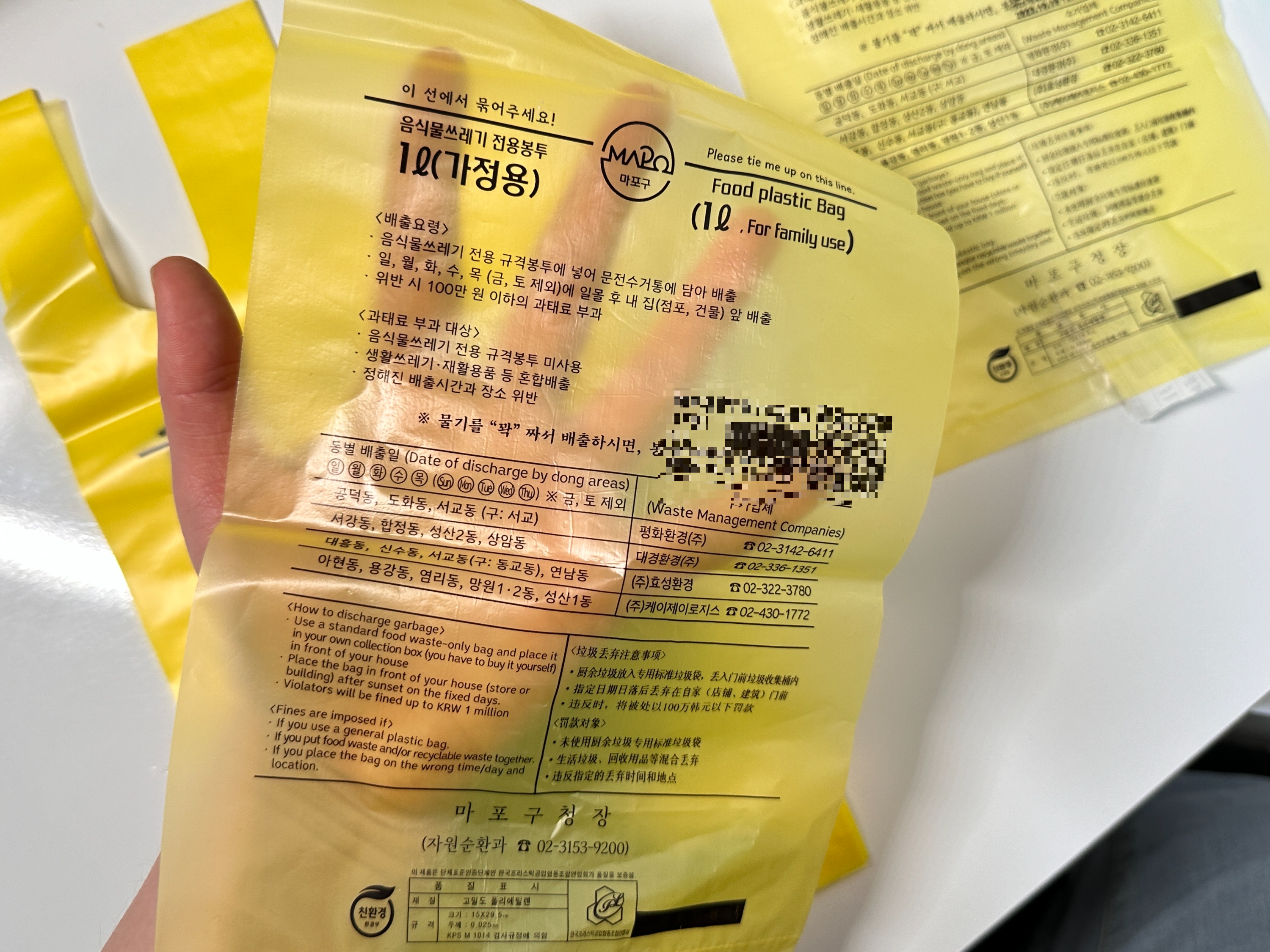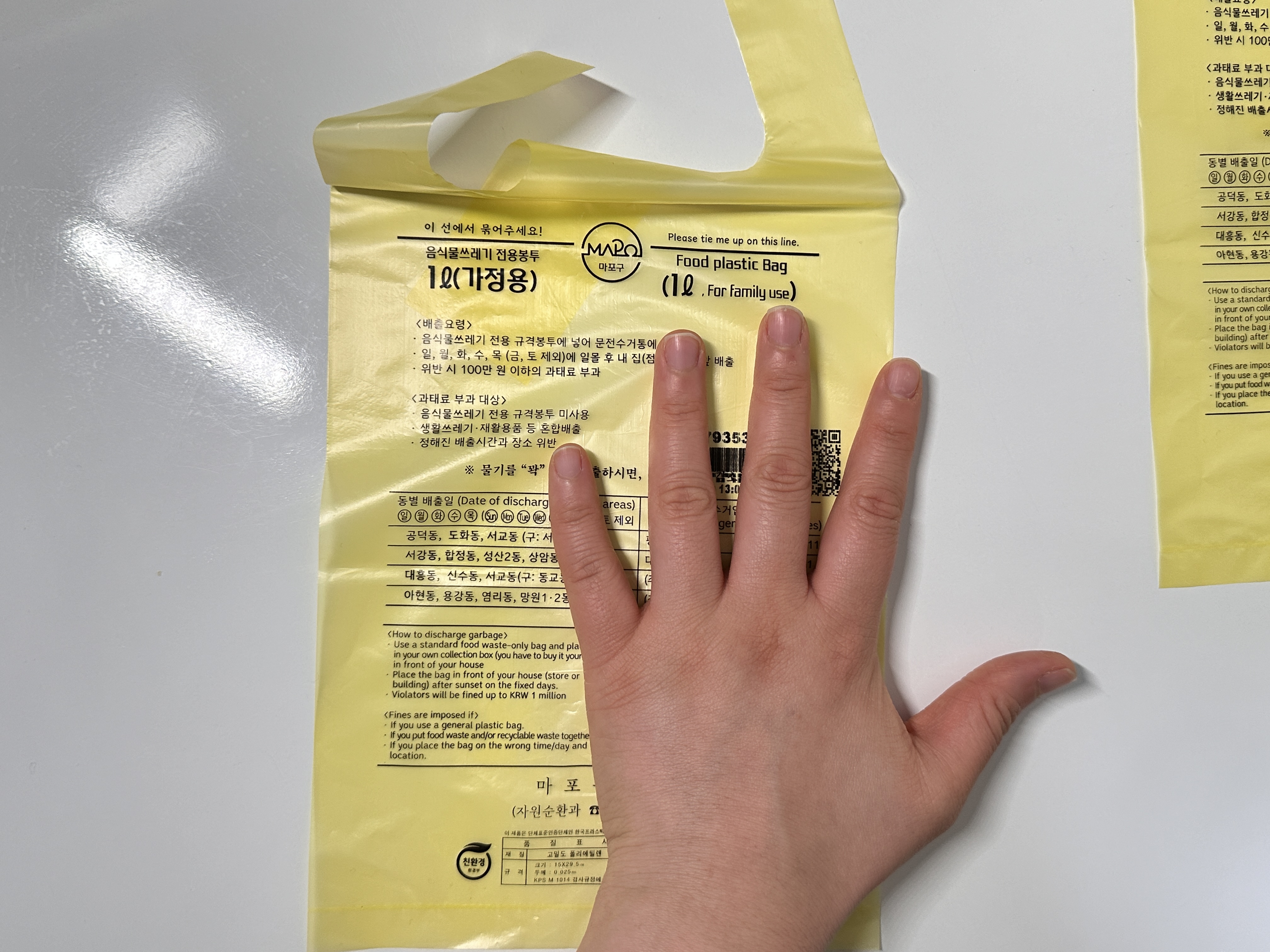 제일 작은 크기의 쓰레기종량제봉투 5L와 크기비교도 해봤습니다. 이렇게 보니 음식물 쓰레기봉투가 확실히 작네요ㅋㅋ 오랜만에 음식물 쓰레기 봉투 사면서 1L 사이즈도 있는게 신기해서 포스팅 해봤습니다. 1인가구는 제일 작은 쓰레기봉투를 구매하시어 빠르게 쓰레기를 배출하는걸 추천드립니다! 이상 마포구 음식물쓰레기봉투 1리터 구매후기었습니다~