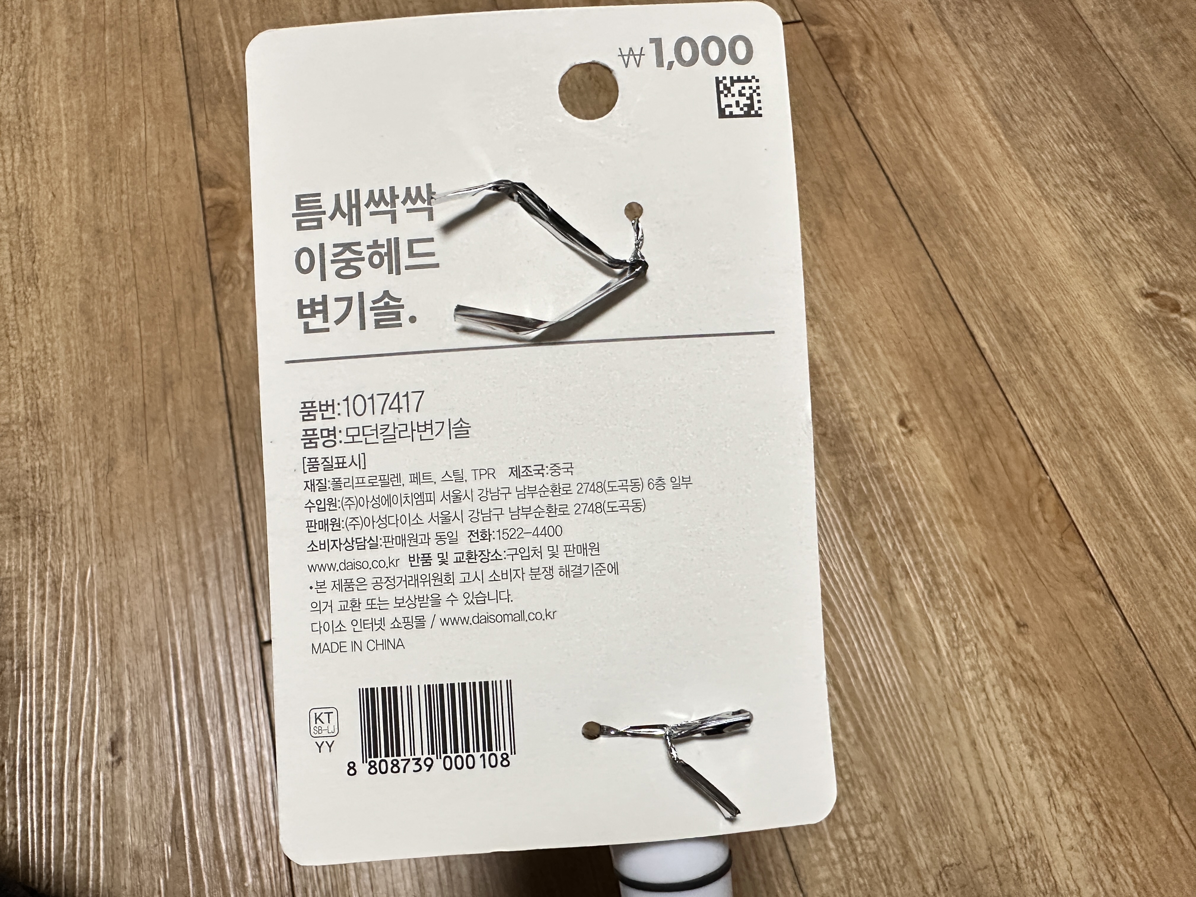 틈새싹싹 이중헤드 변기솔 품번은 1017417입니다. 제조국은 중국이고요.