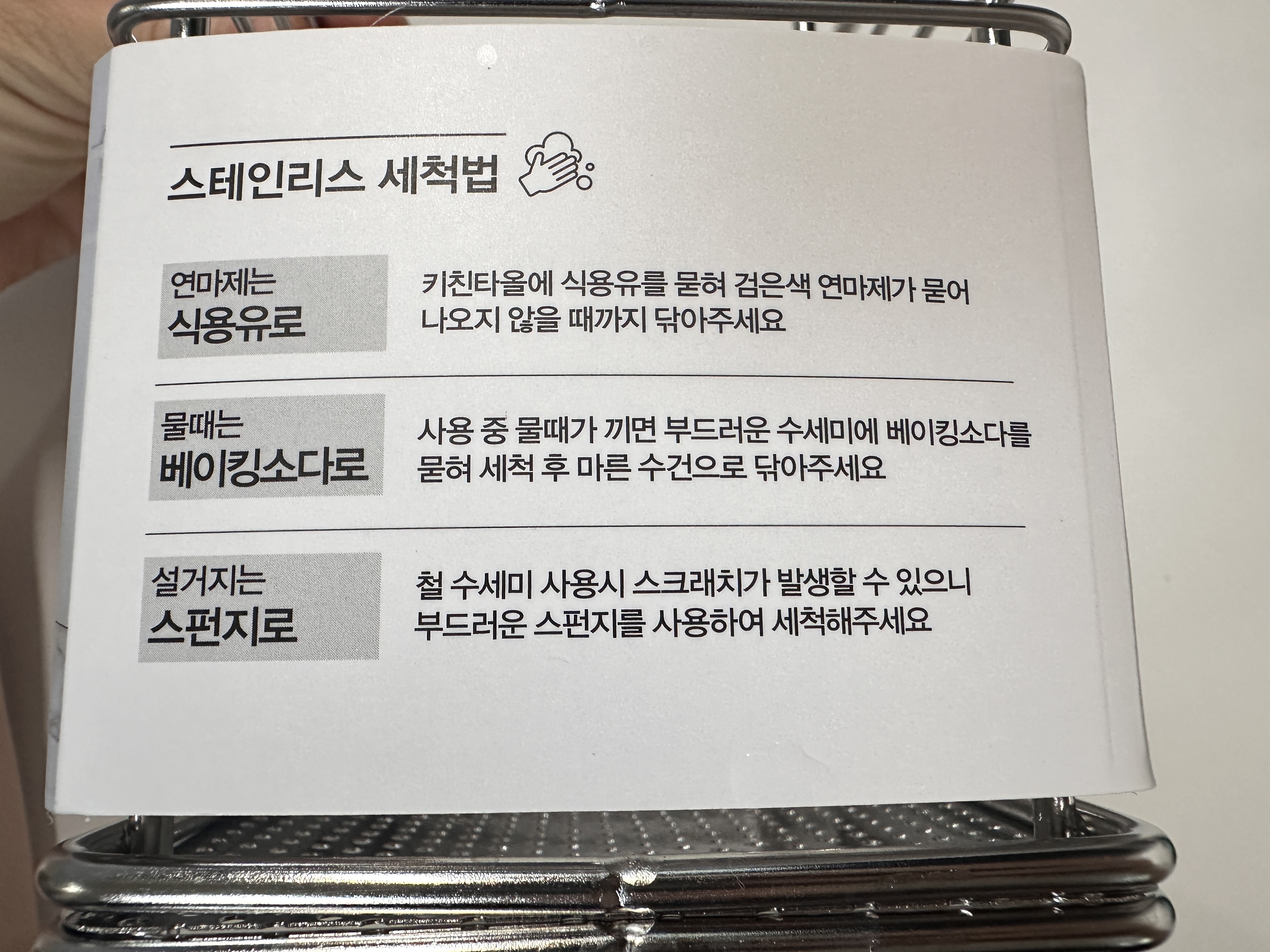 스테인리스 세척법도 나와있습니다. 세척안하고 그냥 썻는데 세척 한번 해야겠네요 ㅠㅠ