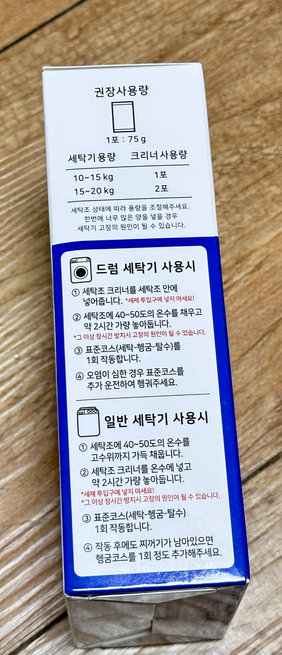 다이소 세탁조 클리너 옆면의 제품특징과 세탁조 클리너 사용방법 확인해 주세요! 이게 세탁기 용량에 따라 크리너 사용량도 다릅니다. 다른 블로그를 들어갔다가 사용량이 많아서 거품을 토하는 세탁기도 있더라고요. 하지만 저는 검색해 본 결과 아래 링크의 오래된 LG 드럼세탁기 F1925WB의 LG전자 고객도우미의 답변을 참고해서 세탁통 청소를 진행했습니다.