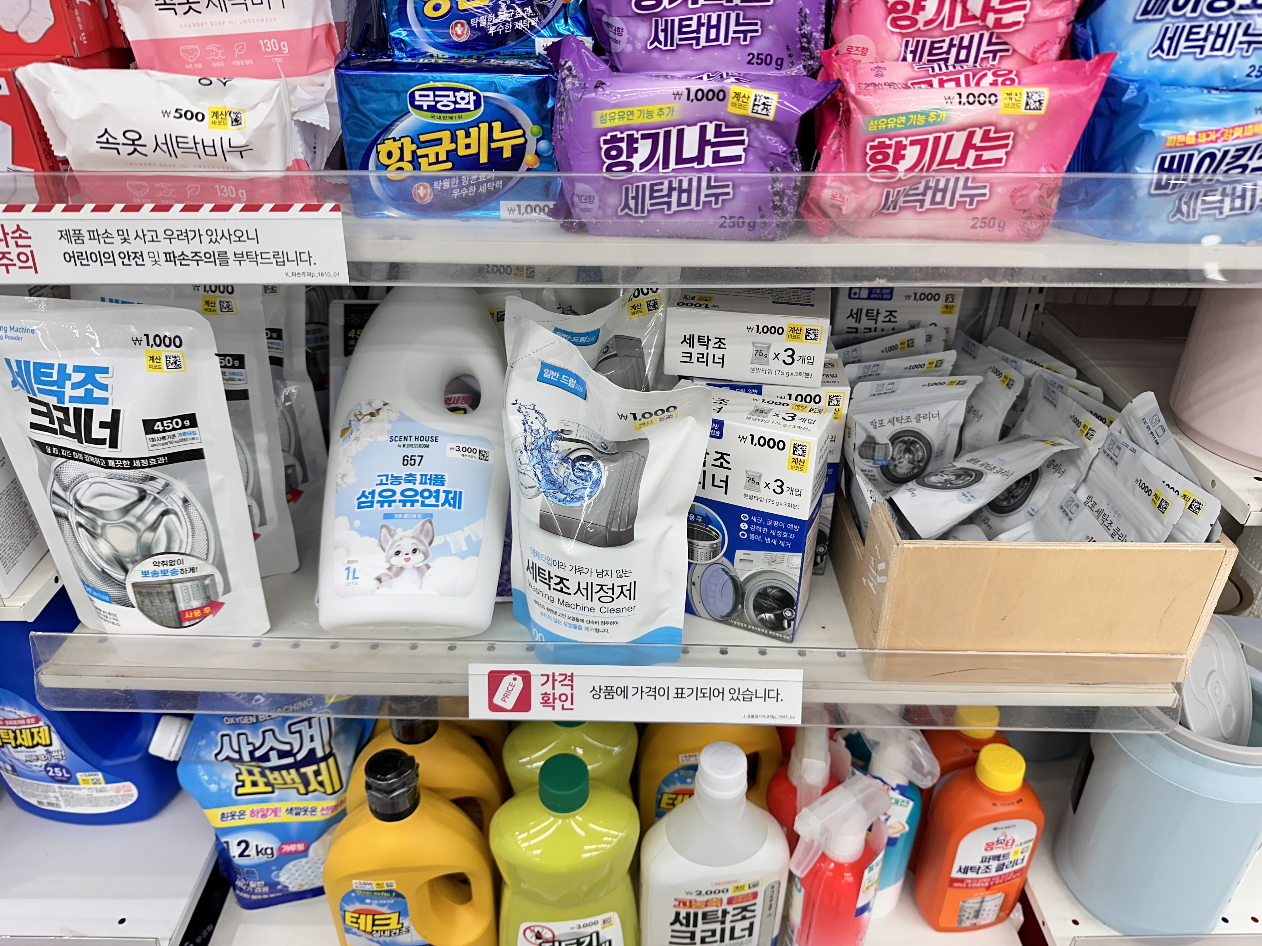 제가 방문한 홍대 다이소 세탁조 세정제 종류도 확인하세요. 발포 세탁조 클리너나 액체로 된 제품도 있고요. 저는 처음 써보는 거니까 테스트할 겸 가성비 좋은 다이소 세탁조 크리너를 구매하기로 했는데요. 다이소 사이트에서 리뷰도 찾아봤는데 그럭저럭 나쁘지 않아 보이더라고요.