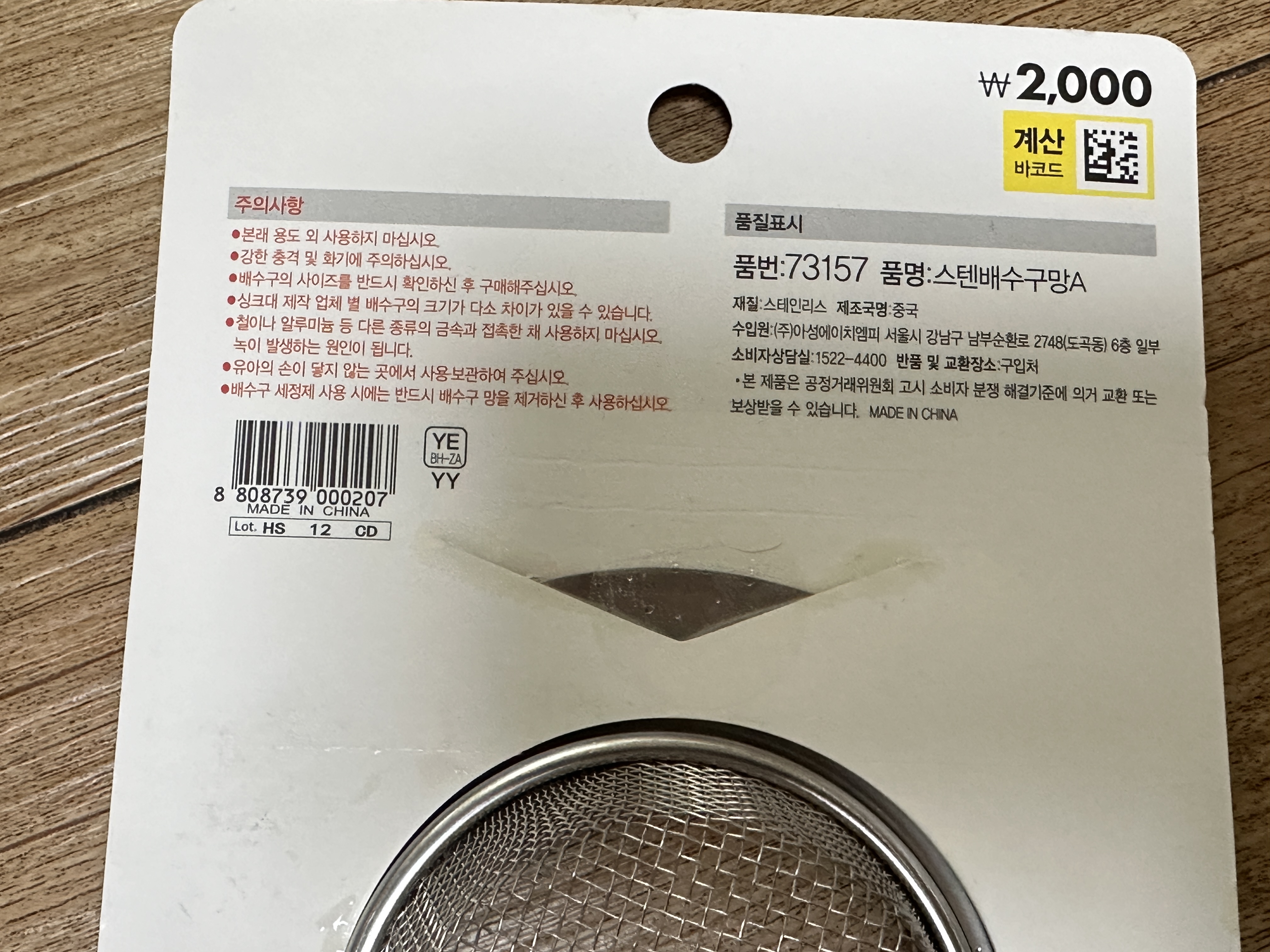 다이소 씽크대 배수망 제조원은 한국이에요.