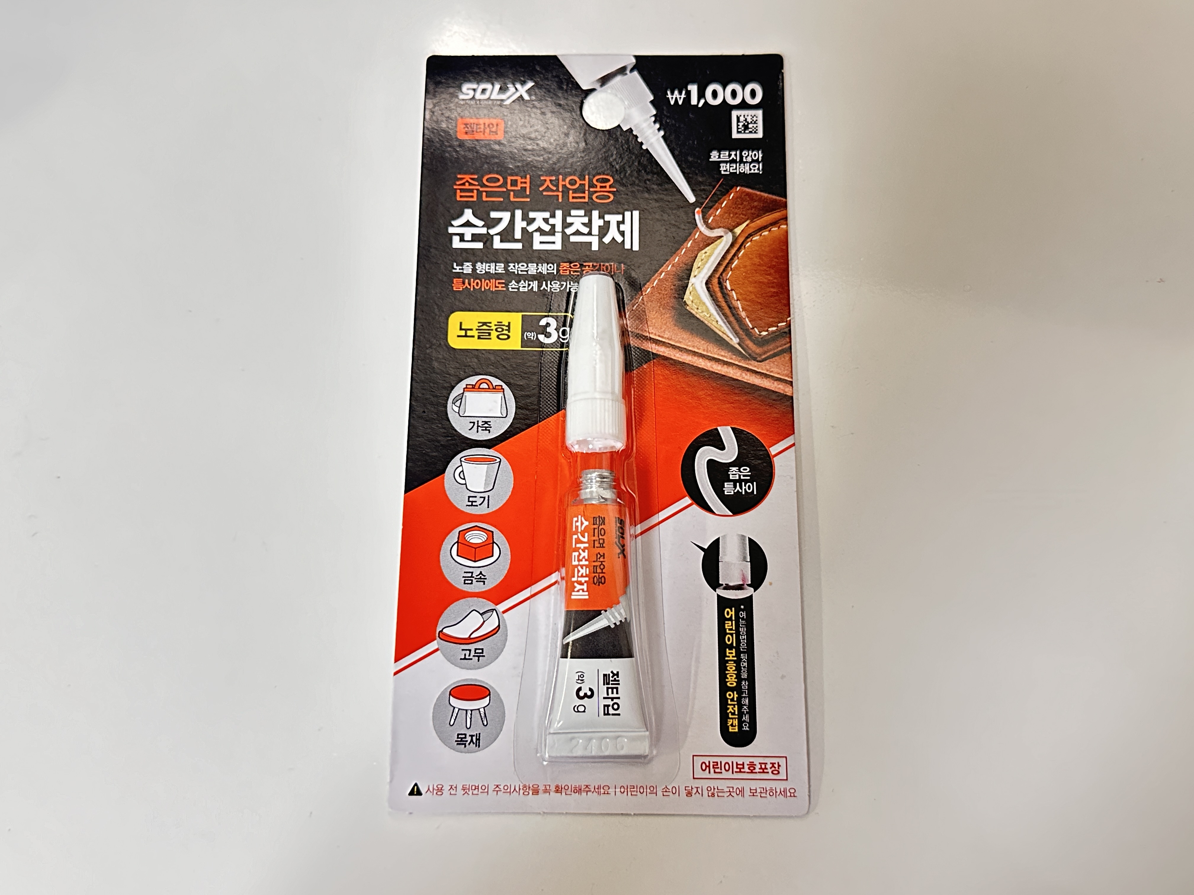 순간접착제로 밑창 붙여야지 생각했는데 다이소에 신발 접착제도 팔더라고요. 다이소 신발 접착제와 순간접착제 둘중에 고민하다가 그냥 순간접착제 구매했어요.