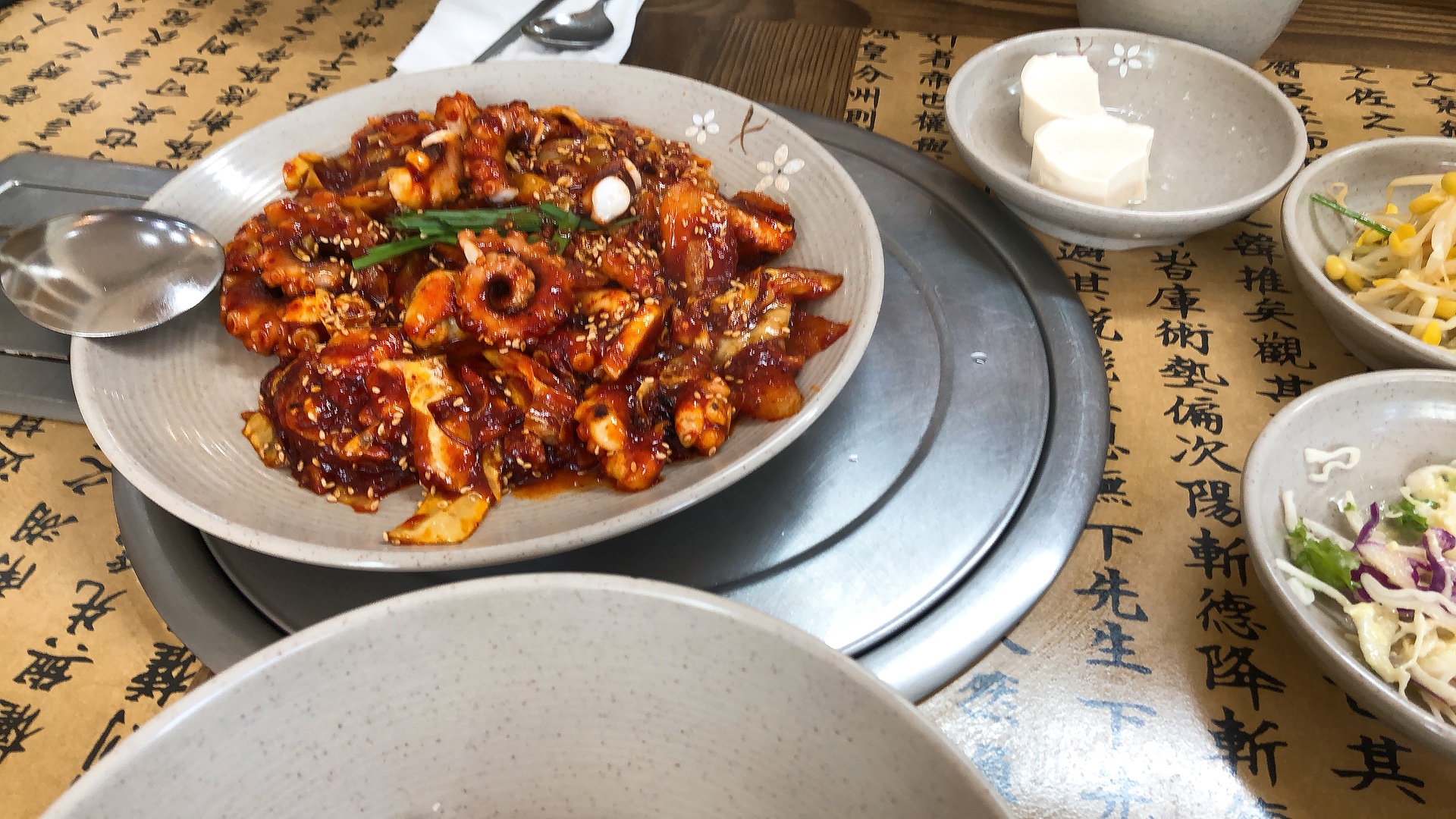 낙지 살이 아주 오동통했다. 낙지 볶음은 먹기 좋게 잘라서 같이 나온 밥과 슥슥 비벼먹었다. 맵기도 심각한 맵찔이가 아니면 맛있게 매운 정도여서 먹는데 힘들지 않았다.