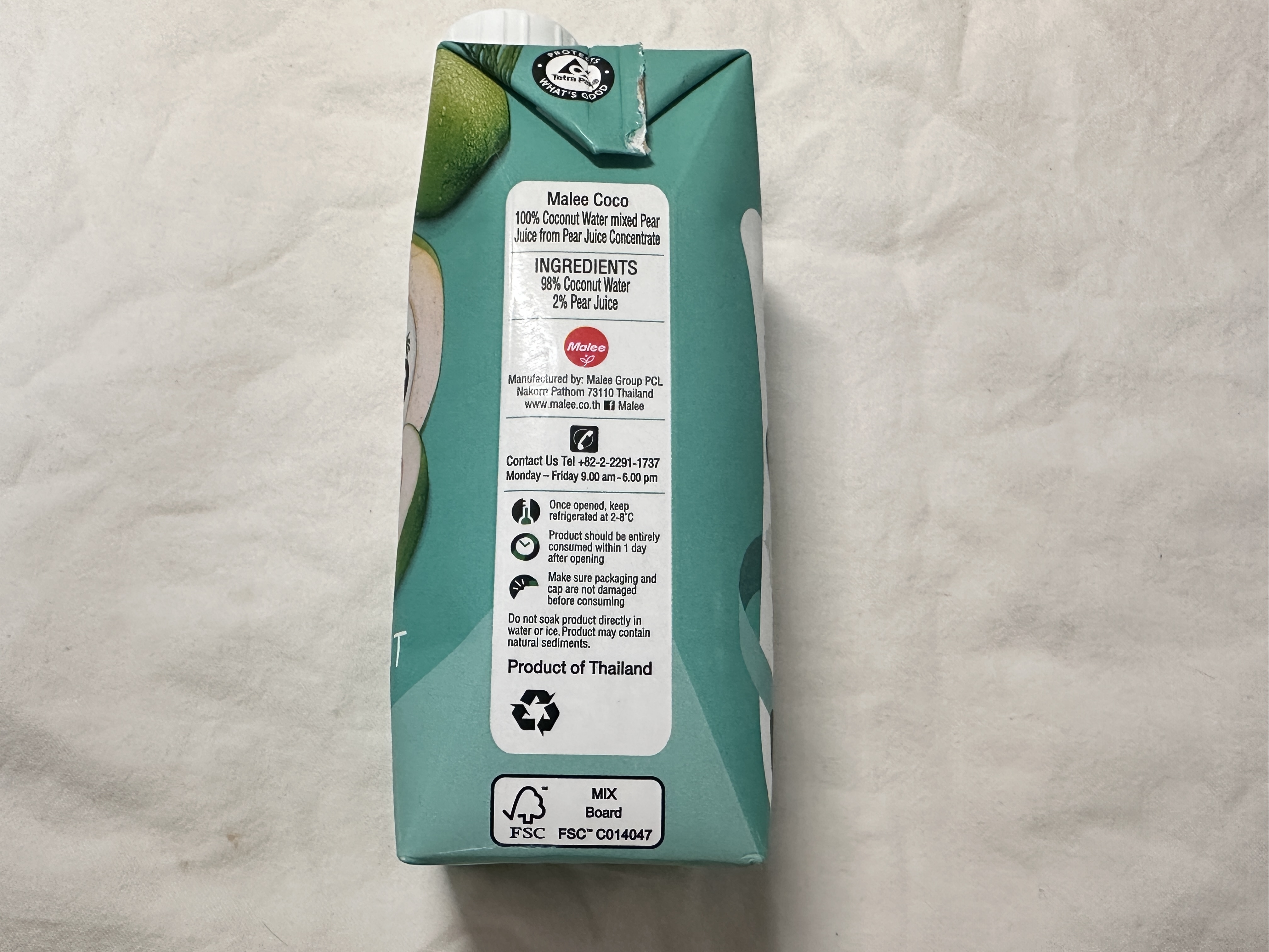 말리 코코넛 워터는 태국의 비옥한 토양에서 풍부한 햇빛과 비를 듬뿍 받고 자라 최상의 코코넛 맛을 자랑한다고 합니다. 마시는 방법은 차갑게 마셔야 더 달콤하다고 하네요. 갈증 해소에 탁월한 이온음료라고 합니다.