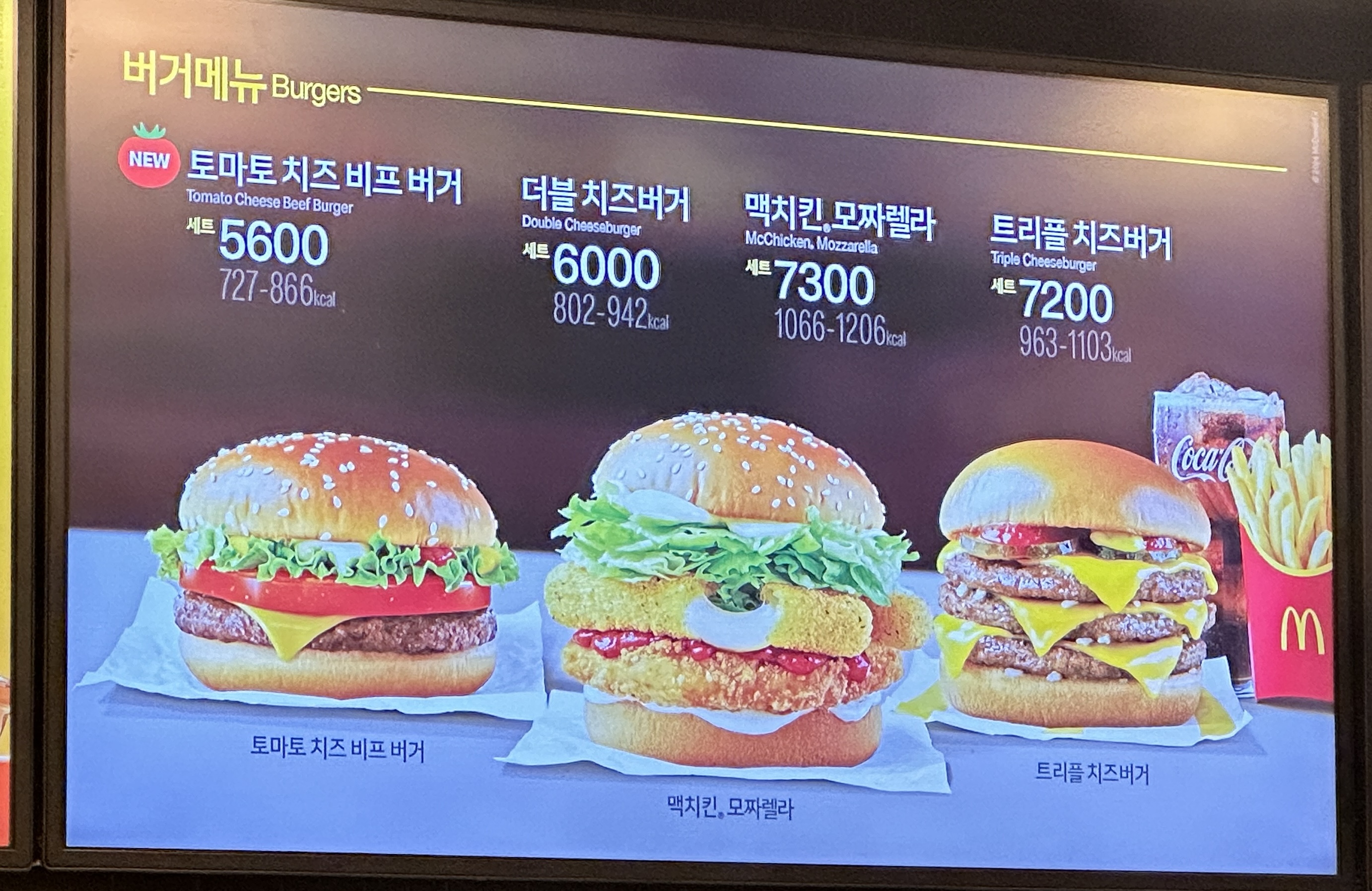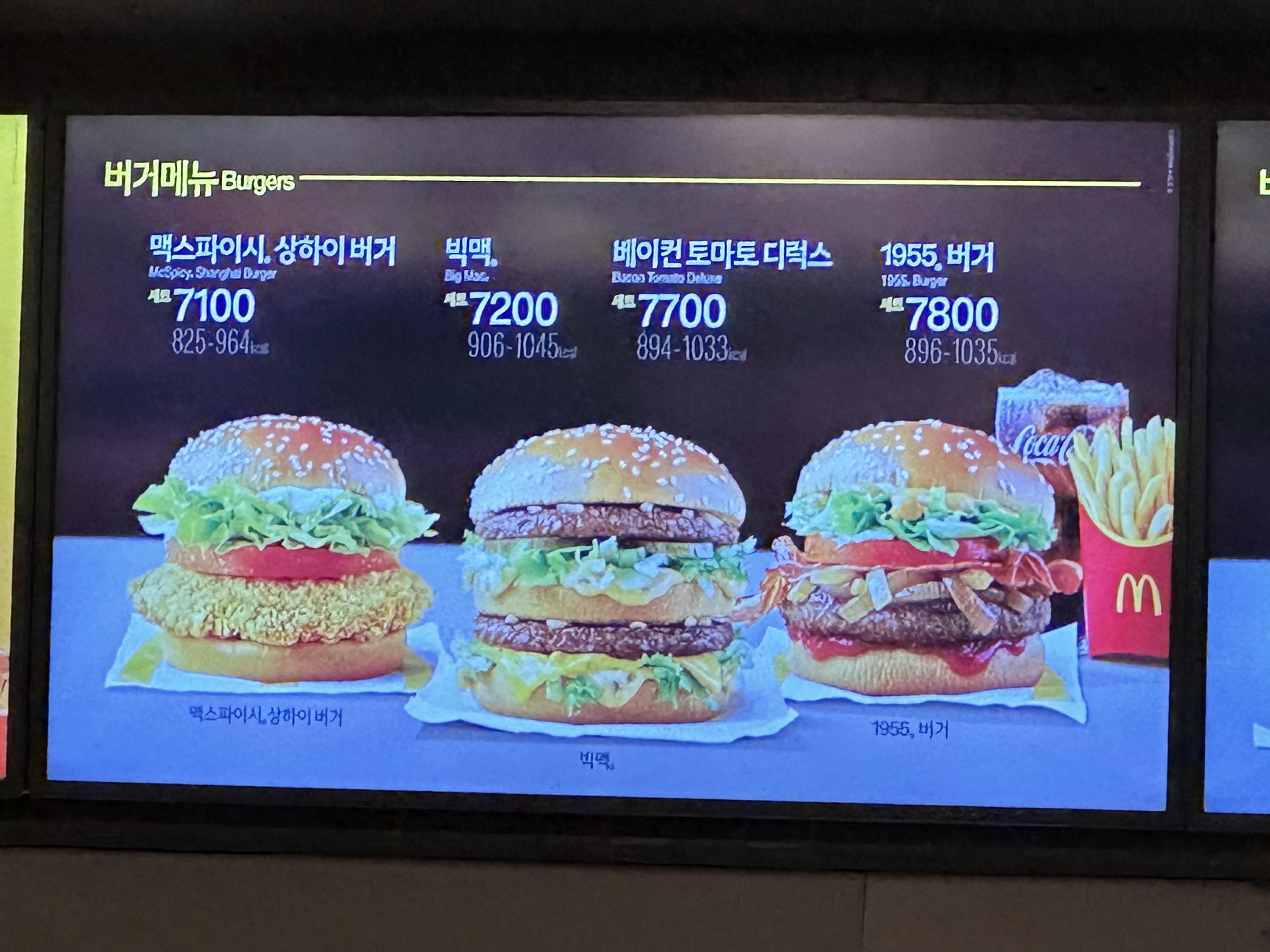 맥도날드 햄버거 메뉴만 찍으려다 오기가 생겨서 맥도날드 사이드 메뉴판도 찍어왔습니다!