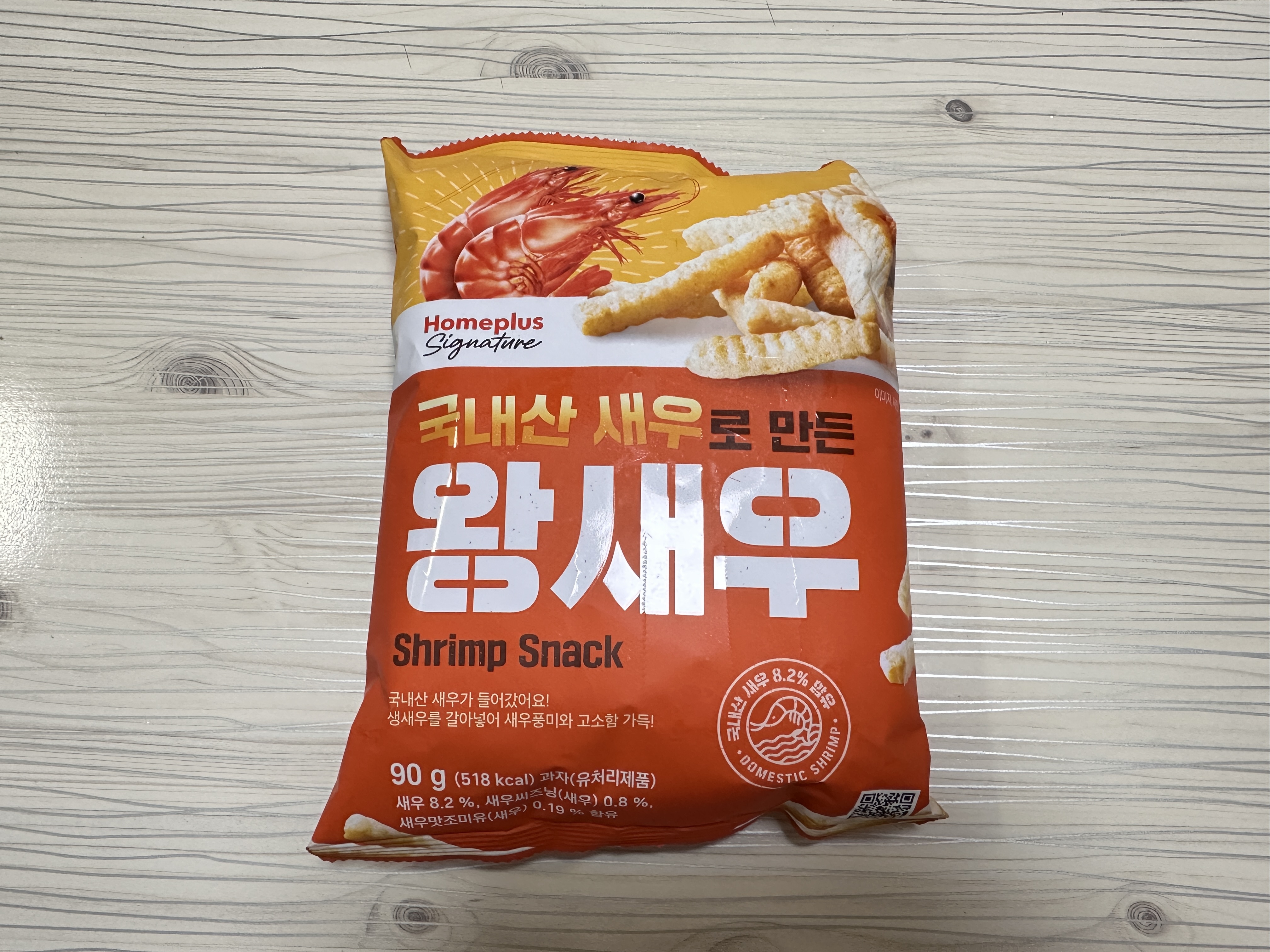 제가 얼마 전까지만 해도 최애 과자가 새우깡이었는데요. 아니.. 한창 물가 오르고 새우깡 가격도 올랐다 내린 이후로 새우깡 맛이 영 예전 같지가 않더라고요. 좋아하니까 사 먹는데 매운 새우깡도 일반 새우깡도 맛이 없더라고요. 과자의 시즈닝맛이 진하지가 않더라고요. 그러다 만난 홈플러스 새우깡! 바로 홈플러스시그니처 국내산 새우로 만든 왕새우입니다.