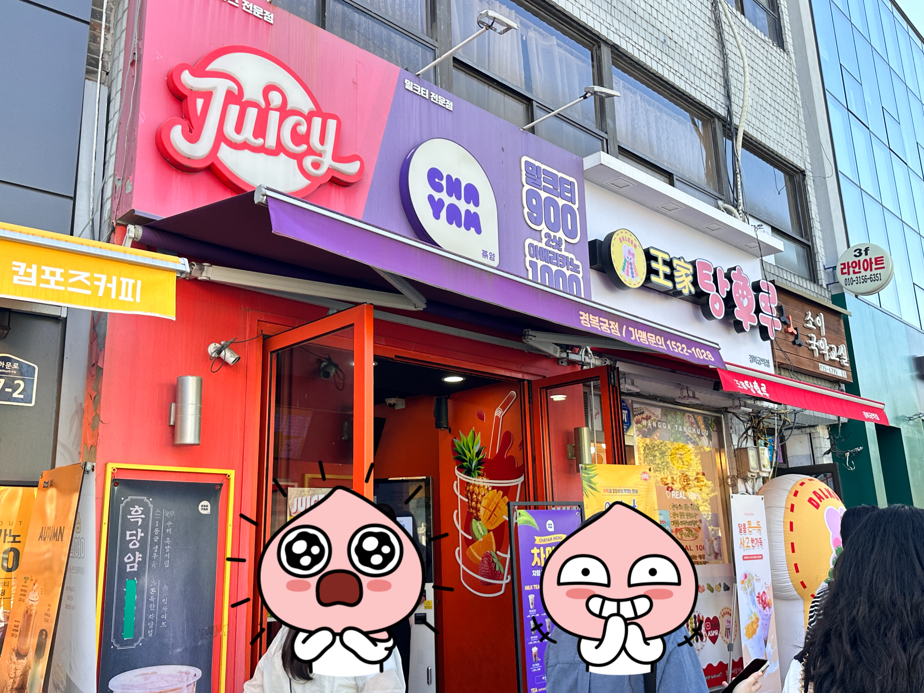 쥬씨와 차얌 간판이 반반씩 나눠져 있네요. 차얌 경복궁역점 바로 옆에는 왕가탕후루도 있었습니다.