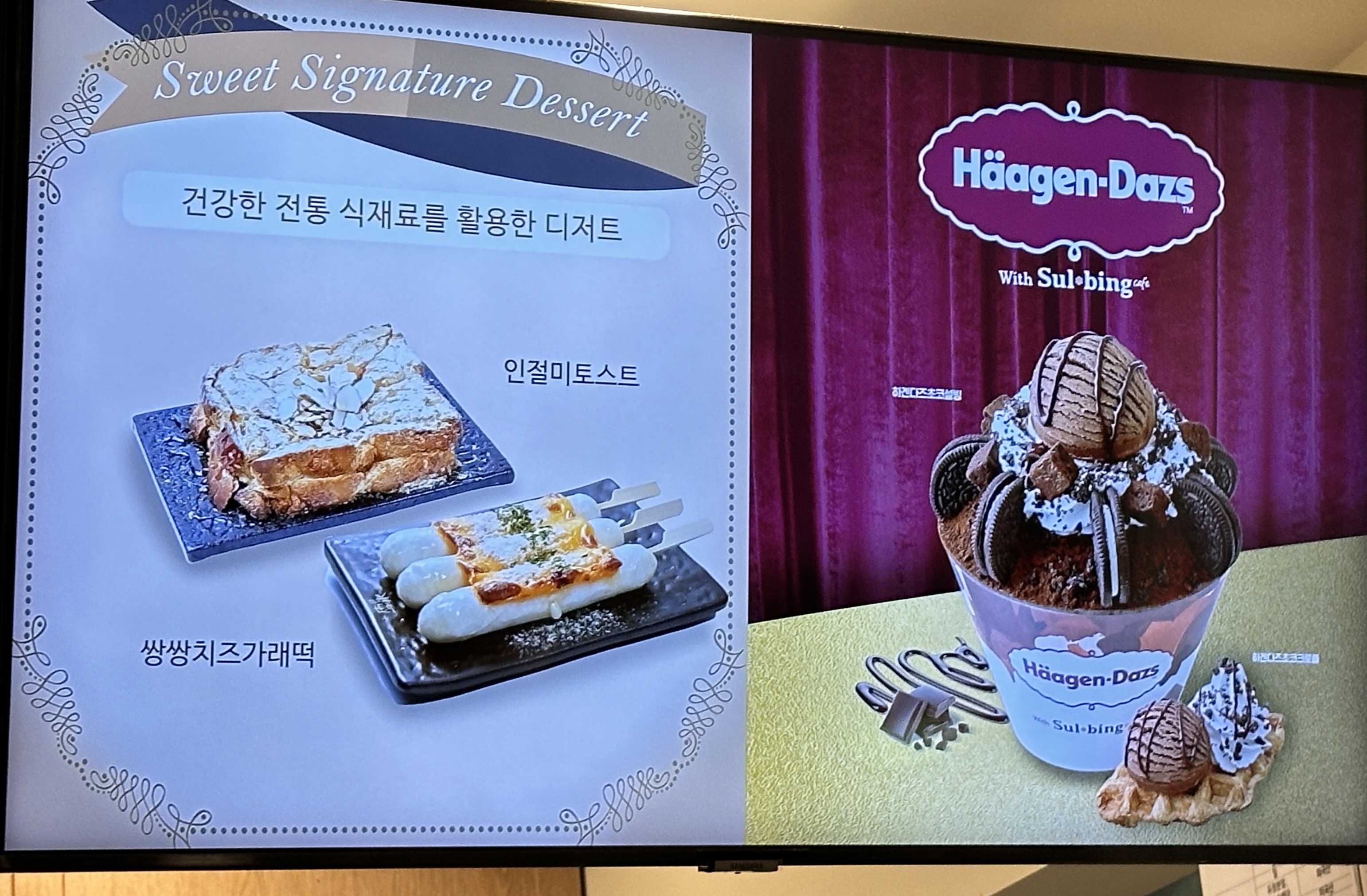 그외 쌍쌍치즈가래떡이나 하겐다즈 초코설빙등이 메뉴판에 있었어요.