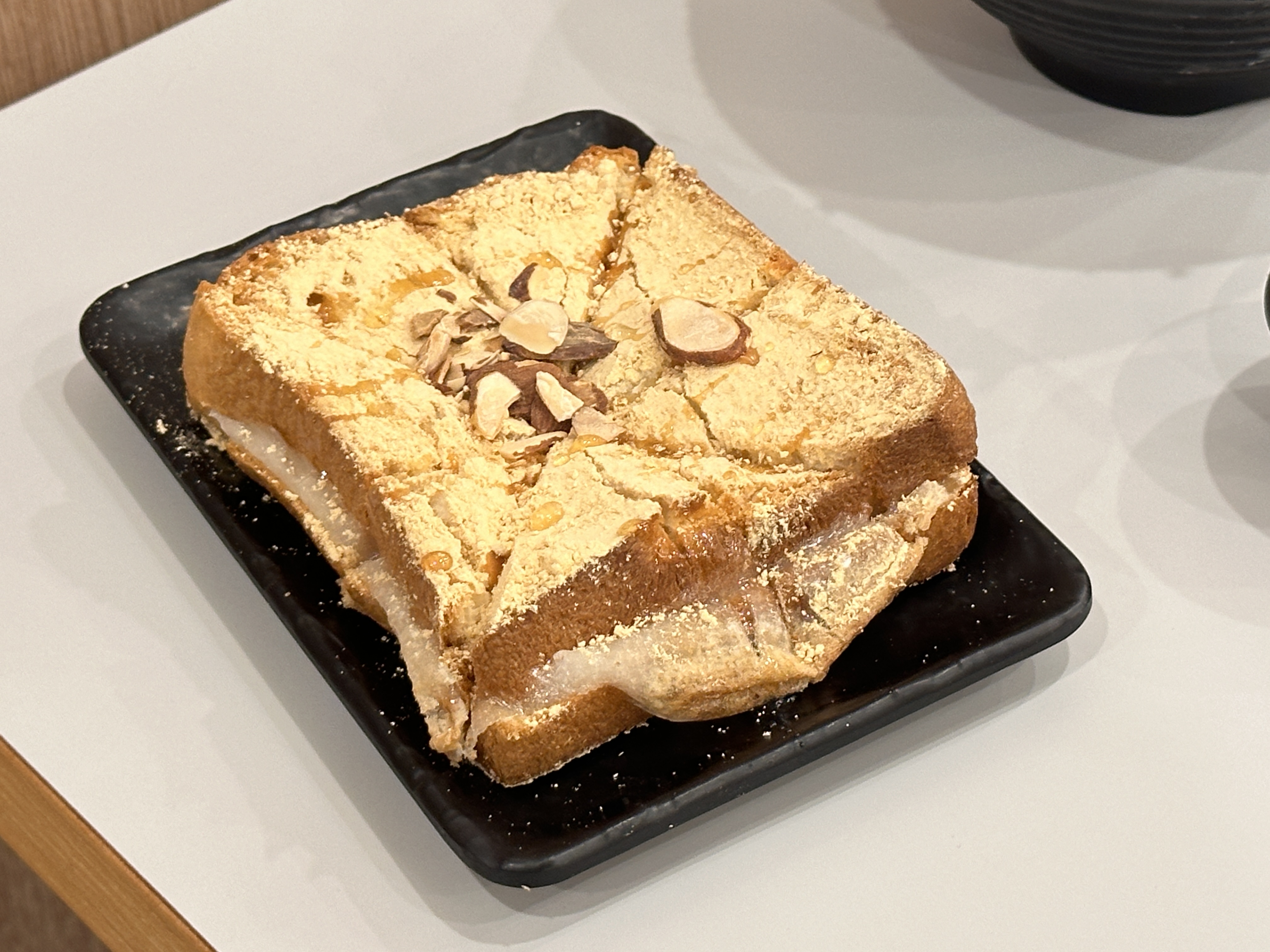 처음 먹어본 인절미 토스트 맛은요. 인절미 가루맛이 잔뜩나고 쫄깃한 한국적인 토스트였어요!
