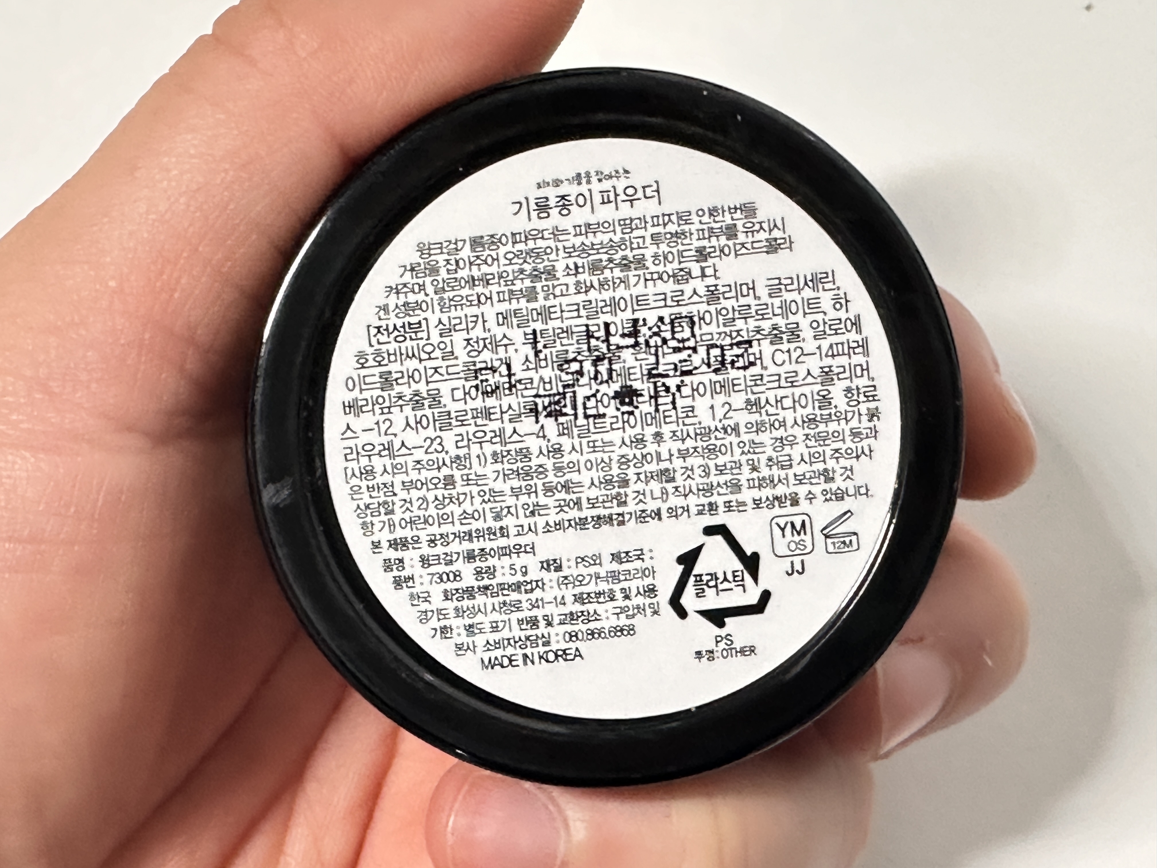 다이소 기름종이 파우더 제조국은 한국 제조입니다! 아주 좋군요..