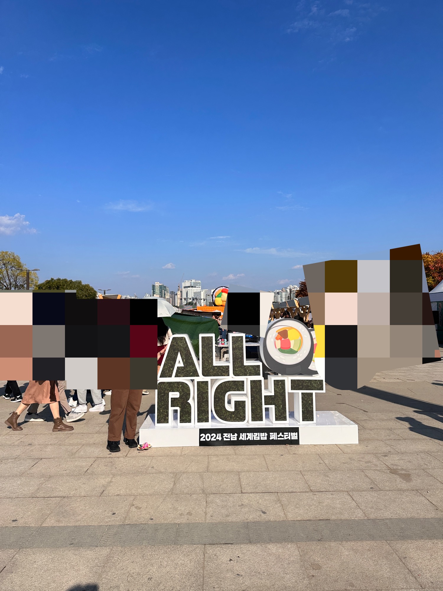 전남 세계 김밥 페스티벌은 여의나루역에서 나오면 바로 행사장이 보이고요. 사람이 꽤 많았어요. 인스타에서 봤던 왕김밥 풍선도 보입니다!