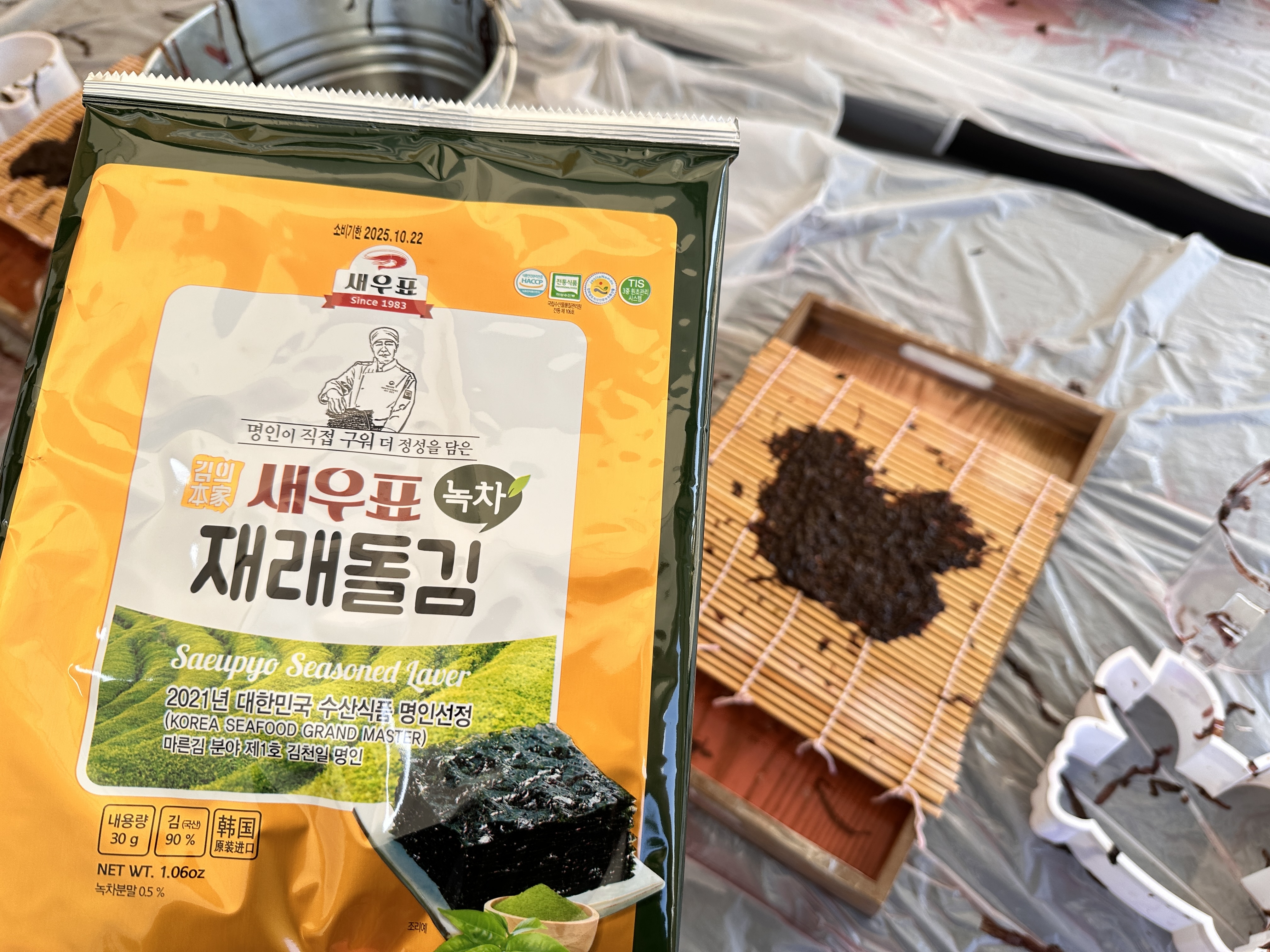 여의도 김밥축제의 김뜨기 체험관에서 직접 김 뜨는 체험도 할 수 있었고 체험하면 재래돌김도 선물로 주셨습니다. 최고… 김뜨기 체험관에 전라남도 저 글씨도 김밥으로 쓴거였어요 ㅋㅋㅋ광기..